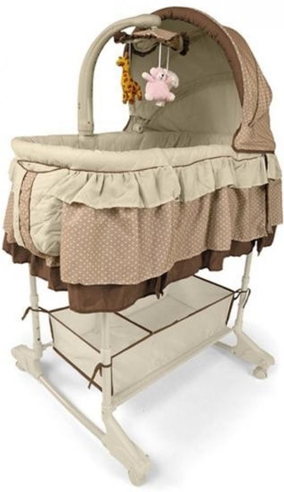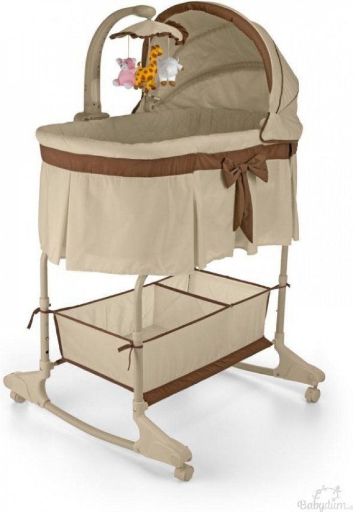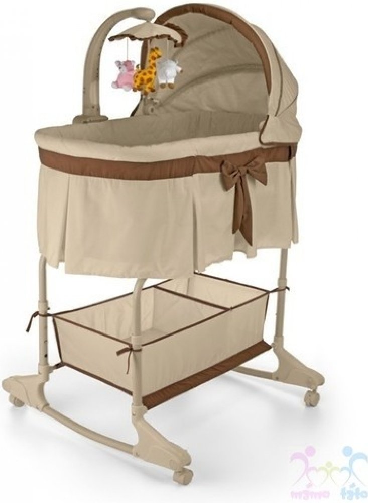 Dětská multifunkční kolébka a postýlka v jednom Milly Mally. Charakteristika:- nastavení výšky do 4 poloh- odnímatelná, regulovatelná stříška- kolotoč s veselými plyšovými hračkami, melodií a noční lampičkou- možnost regulace intenzity světla lampičky a hlasitosti přehrávaných melodií- včetně dálkového ovladače pro ovládání melodií a světla- funkce vibrací- praktický koš na pleny a další příslušenství pro miminko- měkká matrace součástí postýlky- vnější dekorace s volánkem- stahovací bočnice pro snadnější přebalování miminka- potah lze prát v pračce- vhodná pro miminka do 6 měsíců (8 kg)- rozměry: délka: 87cm, šířka: 47cm, hloubka: 27cm, výška: 135cm (regulovatelná)rozměr matrace: délka cca 79 cm, šířka cca 41 cmNapájení kolotoče zajišťují 3 baterie typu C (nejsou součástí)