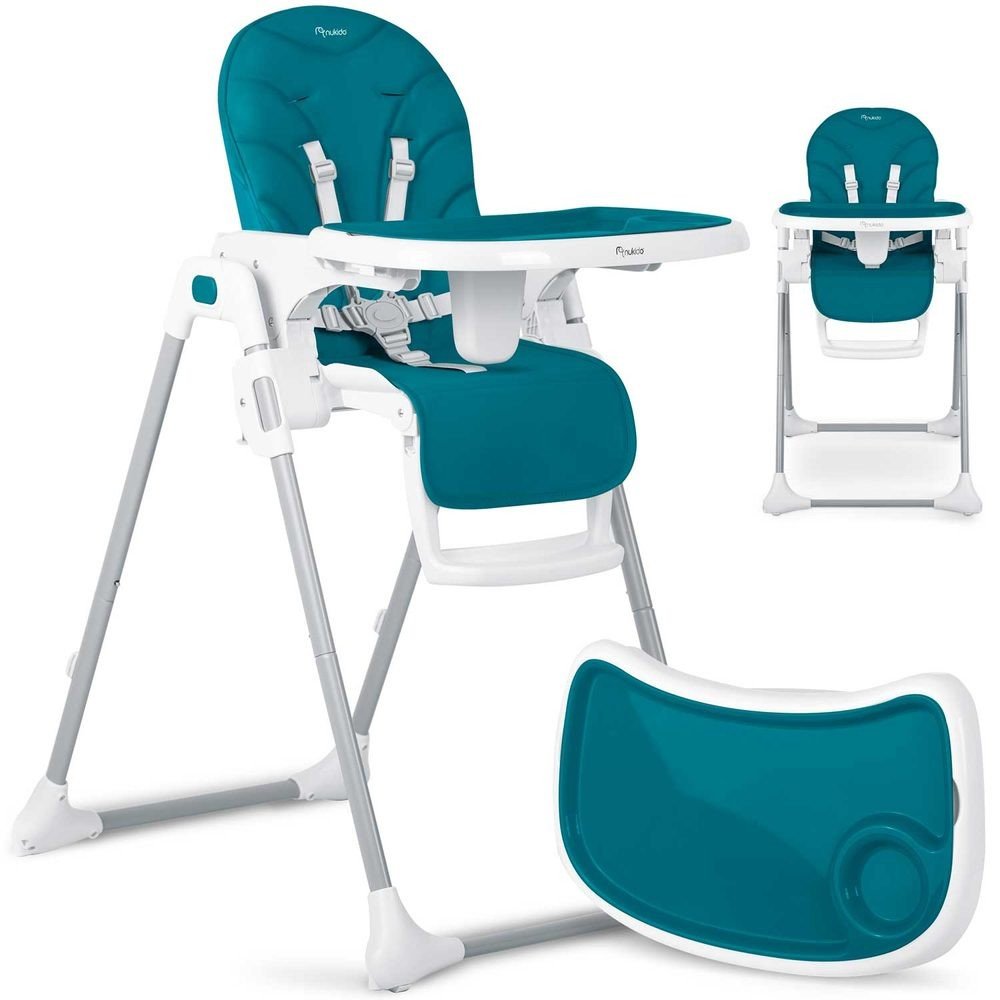 Čalounění židle je vyrobeno z ekologické kůže a má navíc měkkou vložku pro nejmenší. Pro bezpečnost dítěte je vybavena 5-ti bodovými nastavitelnými pásy a přídavnou zábranou proti uklouznutí. Na zadní straně opěradla je úchyt pro zavěšení tácu. Opěradlo i podnožku lze sklopit do lehu. Sedák lze zvednout nebo snížit v 7 stupních a nohy mají zabudovaná gumová kolečka. Celou konstrukci lze snadno a hladce složit.