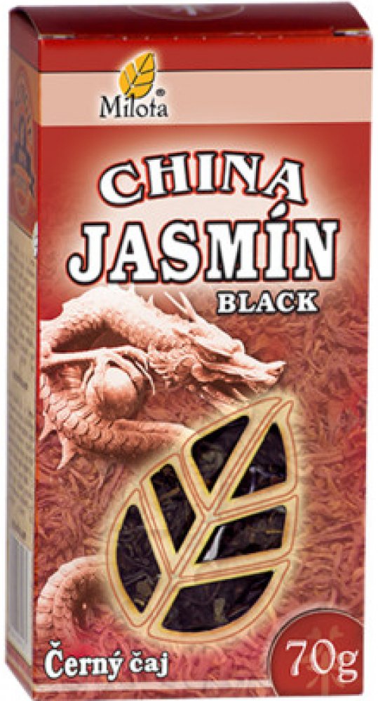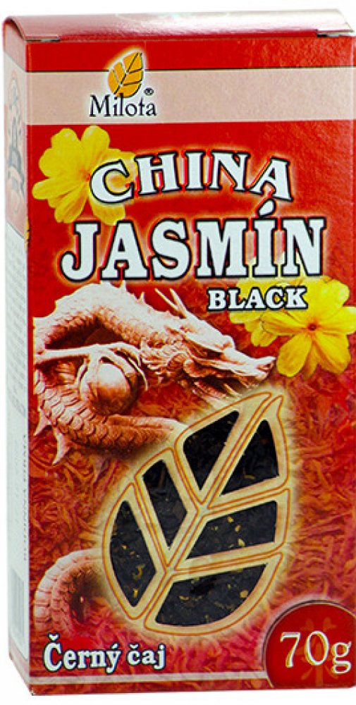 Zloženie: Čierny čaj (Camellia sinensis), Kvety Jazmínu (Jasminium sambac). Jazmín pochádza z oblasti Perského zálivu. Kvety jazmínu sa užívajú k prevoneniu čiernych aj zelených čajov už niekolko storočí. Jazmínový čaj má výraznú charakteristickú arómu a vynikajúcu osviežujúcu chuť. Tento čaj je kráľom medzi aromatizovanými čajmi a vzniká premiešaním jazminových kvetov (okvetných lístkov) s čínskym čiernym čajom najvyššej kvality. Zpracovanie prebieha v noci, pretože len vtedy sú sladko voniace jazmínové kvety otvorené. Kvety sa zbierajú ráno, kedy sú najčerctvejšie, a do večera sa potom skladujú na chladnom mieste. Jazmín má ukľudňujúce, ako zahrievajúce účinky. Příprava: 1 čaj. lyžička sa prelije 1,5 dl. vriacej vody, vyluhovať 3-5 min.