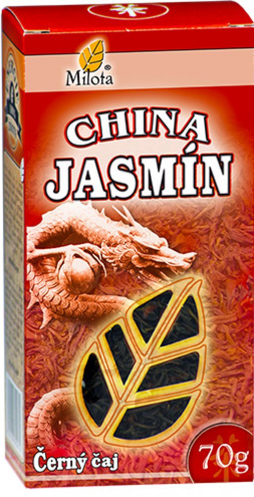 Složení: Černý čaj (Camellia sinensis), Květy Jasmínu (Jasminium sambac). Jasmín pochází z oblasti Perského zálivu. Květy jasmínu se používají k provoňování černých i zelených čajů již několik století. Jasmínový čaj má výrazné charakteristické aroma a vynikající osvěžující chuť. Tento čaj je králem mezi aromatizovanými čaji a vzniká promícháním jasmínových květů (okvětních listků) s čínským černým čajem nejvyšší kvality. Zpracování probíhá v noci, protože jen tehdy jsou sladce vonící jasmínové květy otevřené. Květy se sbírají zrána, kdy jsou nejčerstvější, a do večera se pak skladují na chladném místě. Jasmín má jak zklidňující, tak rozehřívající účinky. Příprava: 1 čaj. lžička se přelije 1,5 dl. vroucí vody, vyluhovat 3-5 min.Výrobce: Milota s.r.o., Záhumení 168, 74285 Vřesina, www.milota.com, milota@milota.comZemě původu: Česká republika