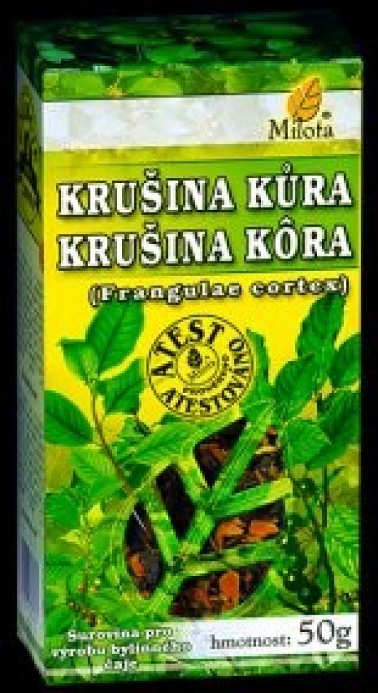 Složení: Frangulae alnus cortex. Nařízením EU je zakázáno uvádět na obalu výrobku jakékoliv zdravotní účinky. Více informací o zdravotních účincích byliny najdete v našem herbáři. VIZ ZDE: http://herbar.milota.com/rostlina/krusina-kura-50g . Účinnými látkami je směs antrachinonů, glykosidů, tříslovin, hořčin a saponinů. Nejúčinnější složkou je glukofrangulin. Projímavě působící látky vznikají během sušení kůry především chemickou přeměnou glykosidu frangulrosidu. Do směsi doporučujeme zejména kombinaci s metaboliky – čekankou, pampeliškou, oddenkem pýru, nebo s diuretiky – vřesem, svízelem syřišťovým či březovým listím. Směs obvykle doplňujeme některou drogou se sedativním působením, například meduňkou, heřmánkem nebo dobromyslí. Užívání: 1 pol. lžíci přelít 0,5 l vařící vody, vyluhovat 15 min popíjet 1 x denně.Výrobce: Milota s.r.o., Záhumení 168, 74285 Vřesina, www.milota.com, milota@milota.comZemě původu: Česká republika