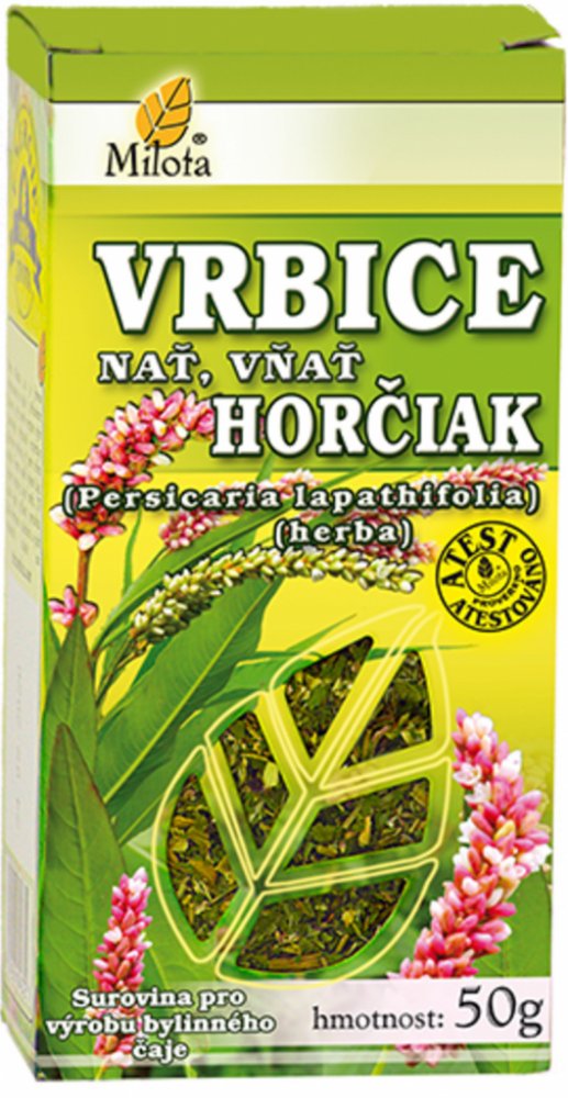 Persicaria lapathifolia herba. Horčiaková drogy obsahujú hojnosť trieslovín, flavonoidy, rutín, horčiny, organické kyseliny, silicu, vosky, vitamín C a K, minerálne látky. Vrbice je veľmi vhodná do zložených čajových zmesí, ktorým dávame prednosť pred samostatným podávaním. Vrbice biela rastie ako burina takmer po celom svete. U nás ju nájdeme v blízkosti vodných tokov, na poliach alebo rumoviskách. 1 čajovú lyžičku na 2dl vody, priviesť do varu, vařit 5 min. vylúhovať 10 minút. Popíjať 2-3x denne.
