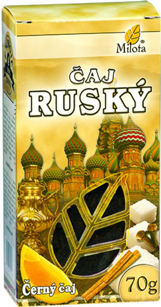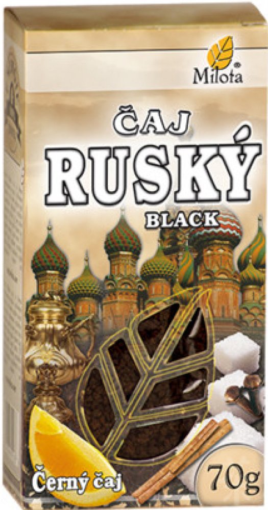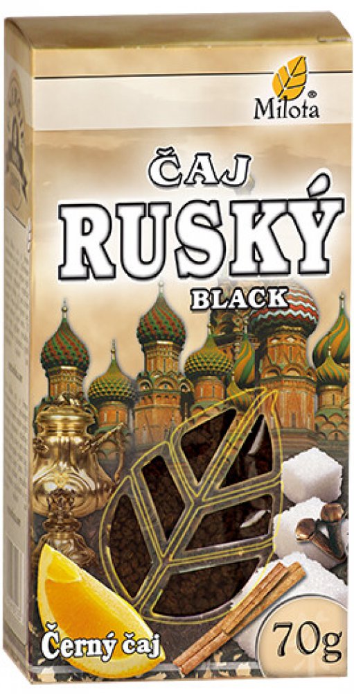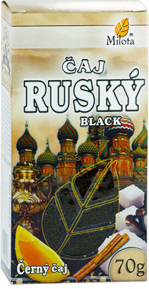 Složení: Ruský černý čaj CTC. Velice kvalitní čaj z oblasti pohoří Kavkaz. Kvalitní celolistový čaj stočený do malých kuliček (způsob zpracování CTC). Listy si takto uchovávají svoji plnou chuť, která se při zalití horkou vodou plně rozvine. Rusové pijí svůj čaj ze Samovaru přes kostku cukru. Velmi oblíbené je popíjení čaje s vodkou, kozím mlékem nebo červeným vínem. Čaj se do Ruska dostal z Mongolska v 17 století, kdy mongolský chán Altyn poslal ruskému caru Michailu Fjodorovičovi darem čtyři pytle čínské trávy. Ruský vládce si lahodný nápoj velmi oblíbil. Poté čaj putoval do Ruska na velbloudích karavanách. Užívání: 2 čajové lžičky na 5 dcl. vařící vody, vyluhovat 5 min. nevařit. Výrobce: Milota s.r.o., Záhumení 168, 74285 Vřesina, www.milota.com, milota@milota.comZemě původu: Česká republika