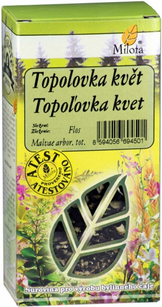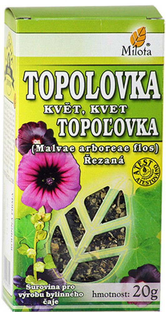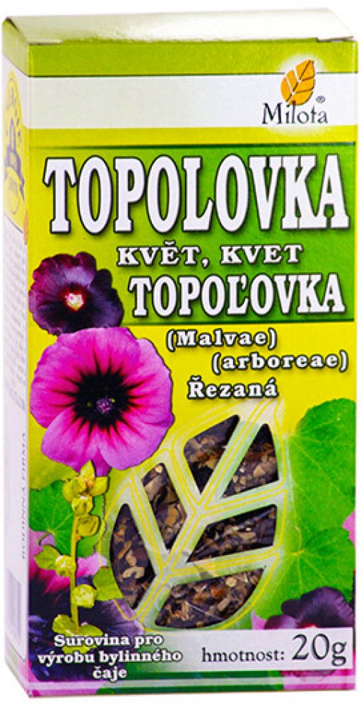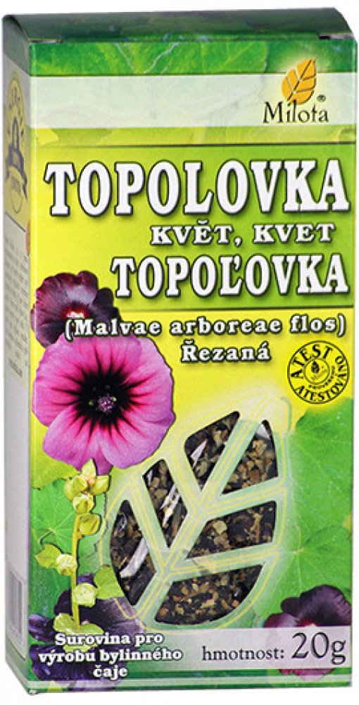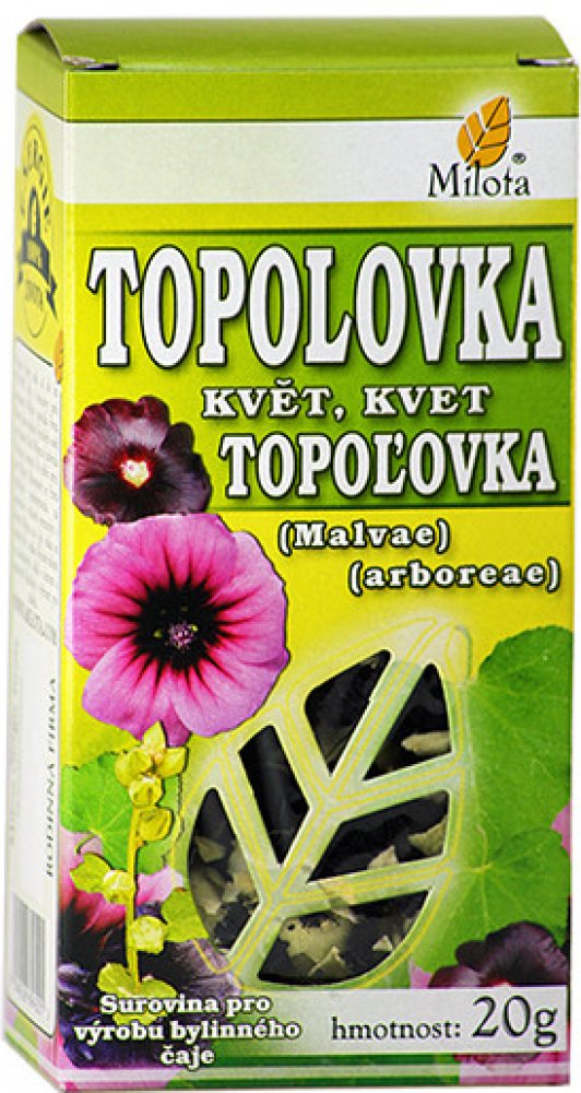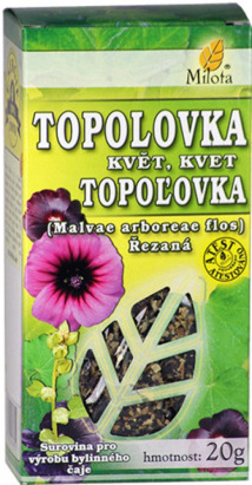 Milota Topolovka květ řez. 20g: V lidovém léčitelství se Topolovka používájako prevence při léčbě onemocnění dýchacího a trávicího traktu.Při léčbě zánětů v ústní dutině a hnisavých poranění kůže se doporučuje drogu kombinovat s tříslovinnými drogami.Působí také mírně projímavě, upravuje menstruaci.U slizů byl zjištěn antibakteriální účinek (proti Pseudomonas aeruginosa, Proteus vulgaris, Staphyll...