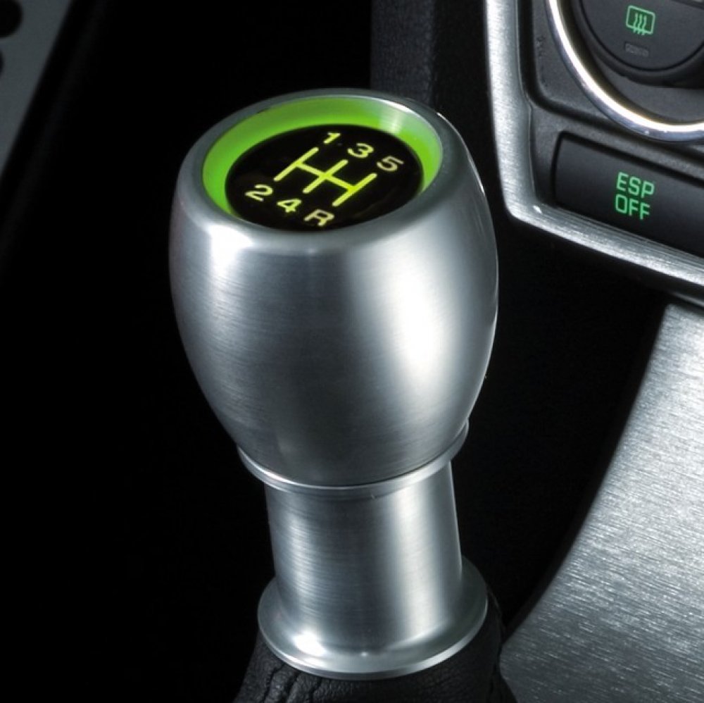 Rukojeť řadící páky se zeleným LED podsvícením grafiky 5-ti stupňové kulisy řazení. Montáž doporučujeme svěřit odborníkům.