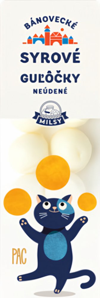 -- Sýrové kuličky neuzené - balení s dětským designem PAC.Vyšší podíl tuku v sušině - až 40% (tuk je nositelem krémové chuti)Nižší obsah soli – cca 1,7% zodpovídá trendu EU a požadavkům moderního trhuBez přídavku konzervantu, stabilizátoru, barviva…