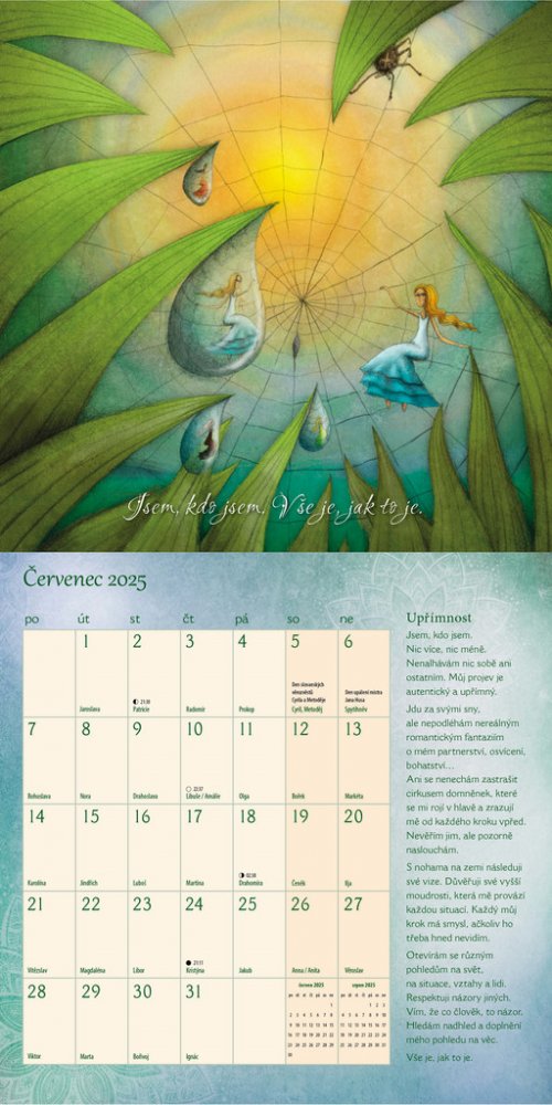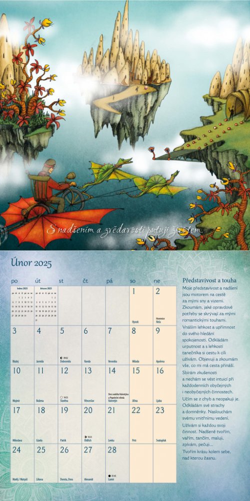 Ke každému měsíci náleží inspirující moudrá myšlenka doplněná dechberoucí ilustrací a texty k zamyšlení a rozjímání.