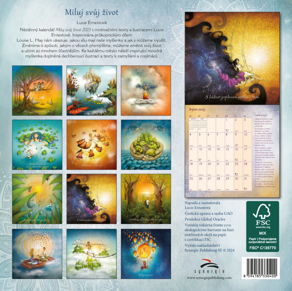Nástěnný kalendář Miluj svůj život 2025 s motivačními texty a ilustracemi Lucie Ernestové.