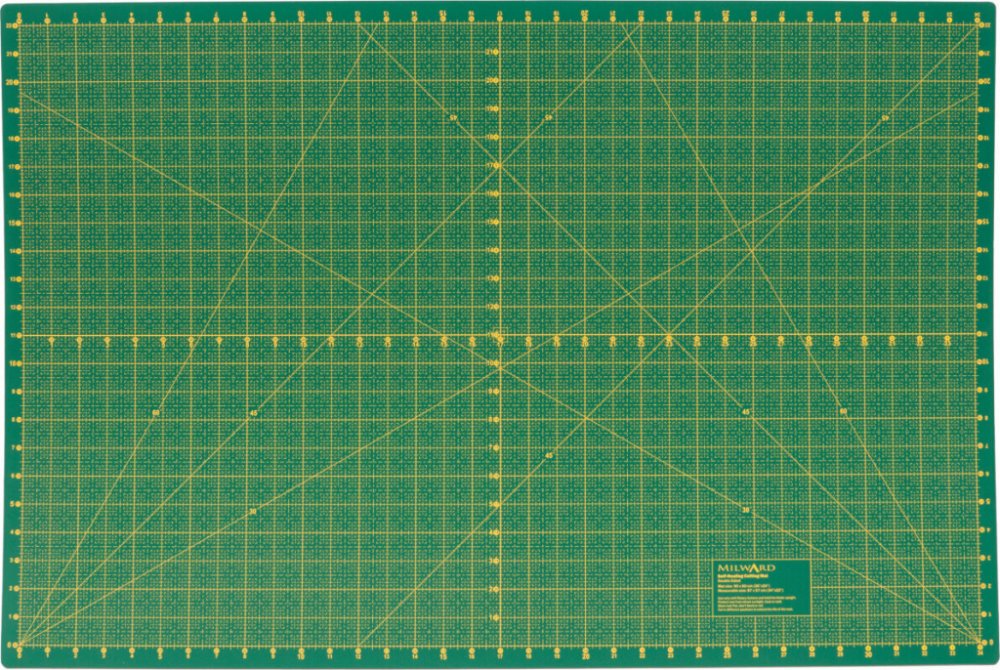 Oboustrannou řezací podložku od společnosti Milward oceníte při řezání menších kousků látky pomocí rotační řezačky nebo skalpelu, nebo nože či ostřím nůžek. Má samoopravnou schopnost, řez na jejím povrchu se opět uzavře, což životnost podložky několikanásobně prodlouží. Podložka má na jedné straně měřící síť v centimetrech a na druhé v palcích, má vyznačené rovné čáry ve více úhlech. Skvělý pomocník při výrobě pruhů, čtverců, obdélníků, trojúhelníků a také jiných tvarů potřebných při patchworku nebo dekoračních dílů.