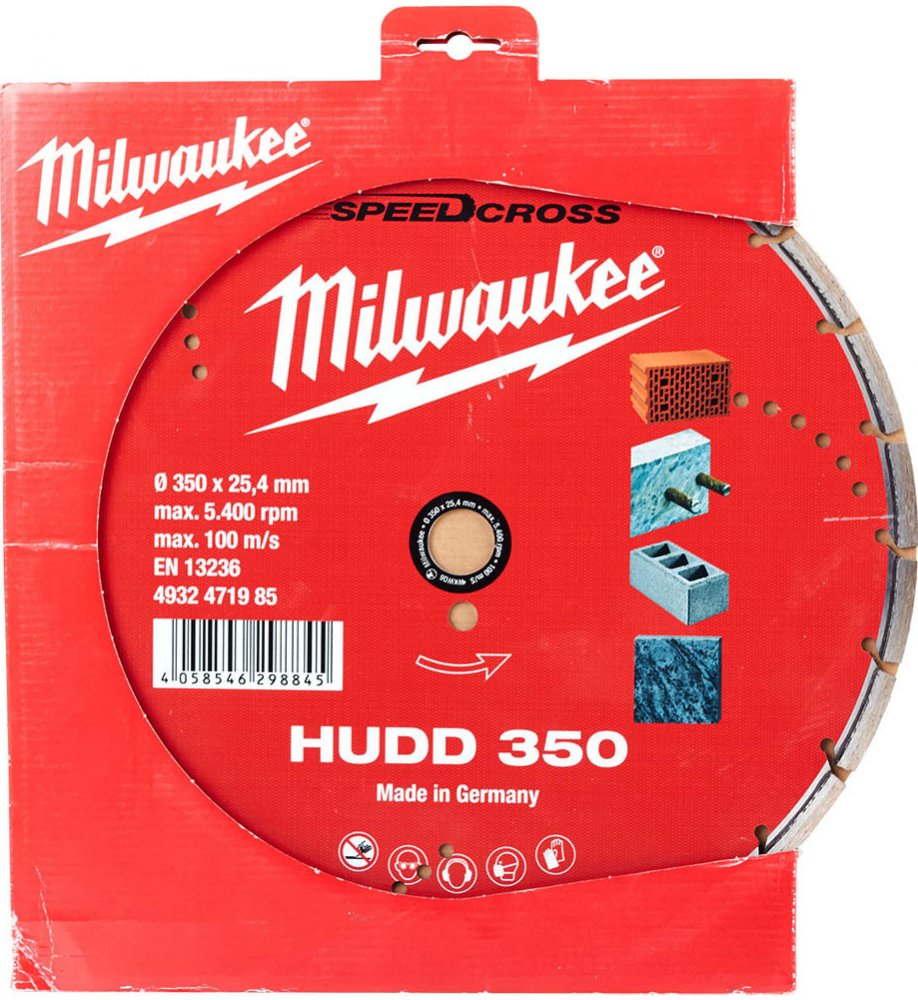 Průměr [mm]: 350, Šířka řezu [mm]: 2.6, Výška segmentu [mm]: 10, Množství v balení [ks]: 1, Typ balení: Blister, Vápencové/pieskovcové tvárnice - mäkké a abrazívne: Vhodný, Vápencové/pískovcové tvárnice - střední: Nejvhodnější, Vápencové/pískovcové tvárnice - tvrdé: Nejvhodnější, Guma: Ne, Hrubý řez: Ne, Izolační materiál: Ne, Paleta: Ne, Pěna: Ne, Ponorný řez: Ne, Rovné řezání: Ne, Sklo: Ne, Všechny typy dřeva: Ne, Dřevotříska, vláknocement, skleněné vlákno: Ne, Abrazivní žáruvzdorné materiály: Vhodný, Čistý řez: Ne, Obsahuje: MILWAUKEE Diamantový kotúč HUDD 350 HPP, Armovaný beton: Vhodný, Břidlice: Nejvhodnější, Mramorové dlažby a desky: Vhodný, Střešní tašky - betonové: Nejvhodnější, Střešní tašky - hliněné: Nejvhodnější, Žulové dlaždice a desky: Vhodný, Abrazivní žáruvzdorné materiály: Vhodný, Guma: Ne, Kameninové / keramické tašky: Nejvhodnější, Výrobce: Milwaukee, Druh: Diamantové