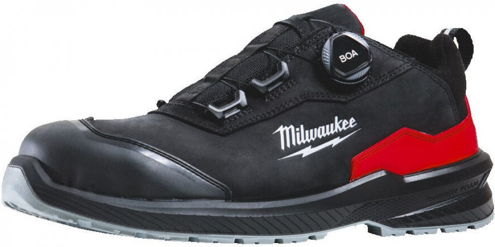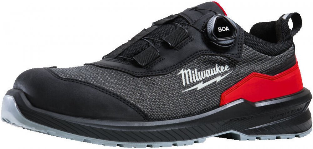 1 pár bezpečnostních polobotek Milwaukee ARMOURTRED™ S3S s BOA® Fit systémem.