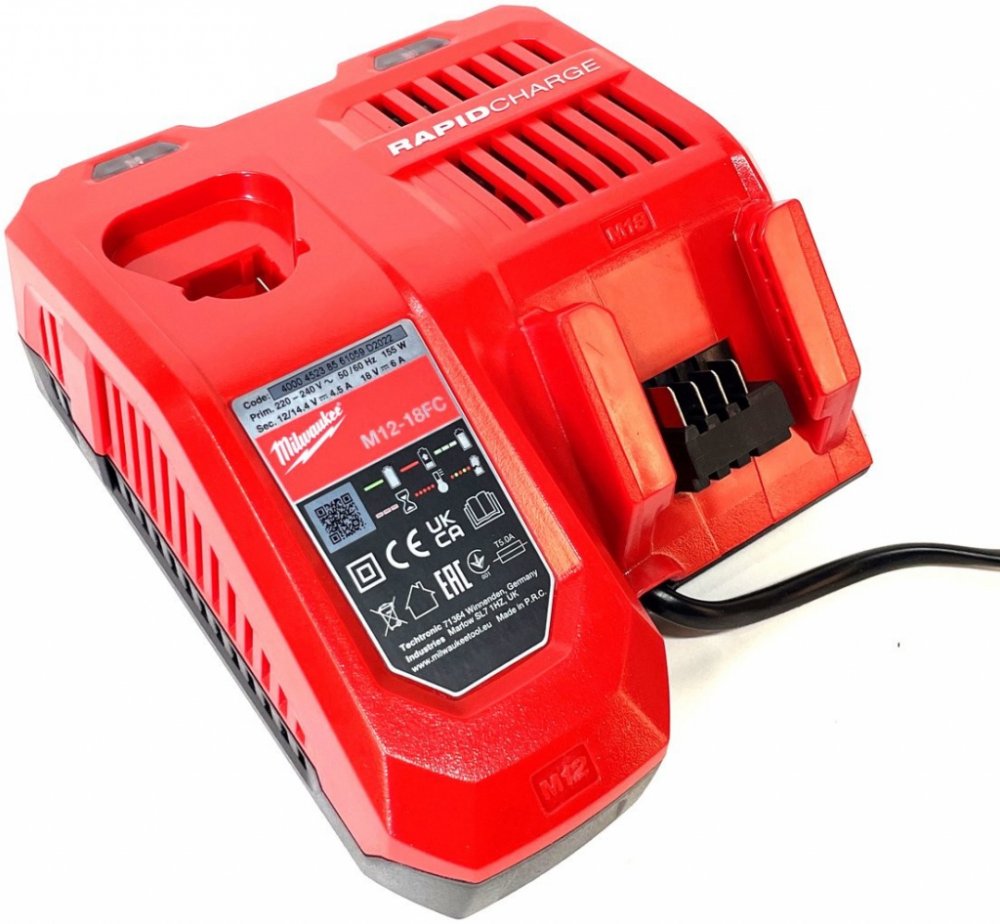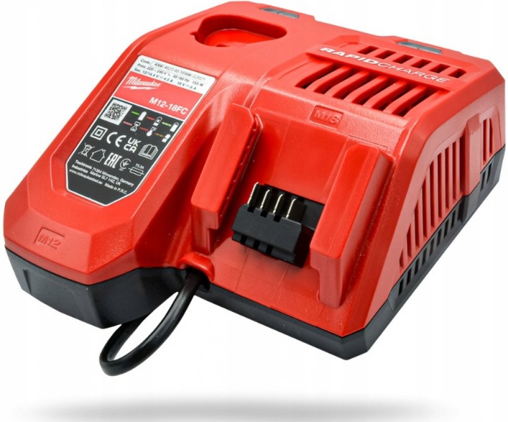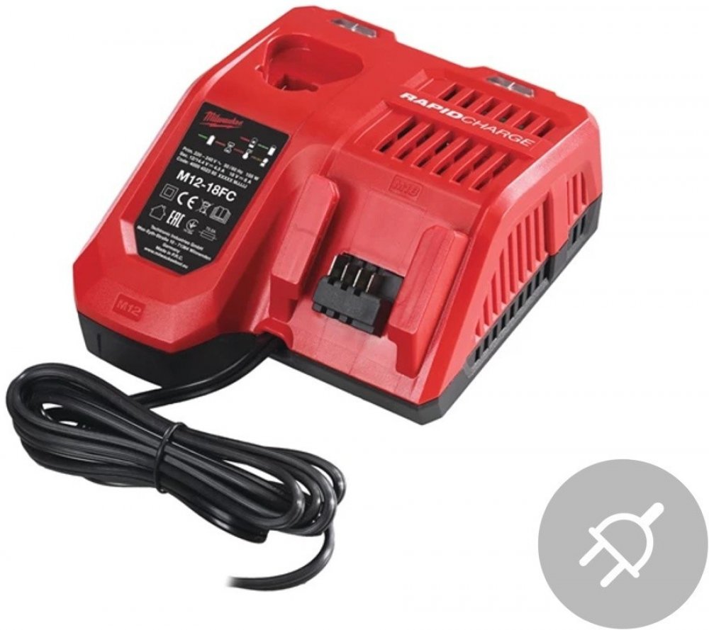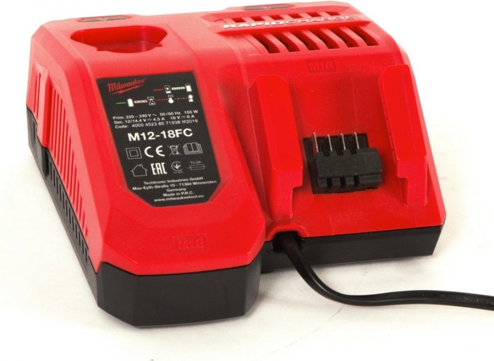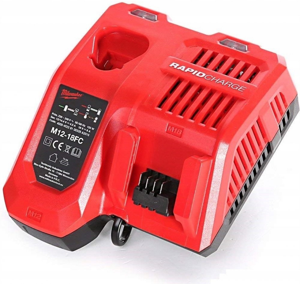 Inteligentní rychlonabíječka M12-18 FC RAPID CHARGE je určena výhradně pro nabíjení li-iontových baterií. Díky speciální elektronice sama rozpozná, jakou baterii jste vložili a podle toho upraví nabíjecí režim. Je o cca třetinu rychlejší, než běžná nabíječka. Je součástí všech strojů Milwaukee FUEL.