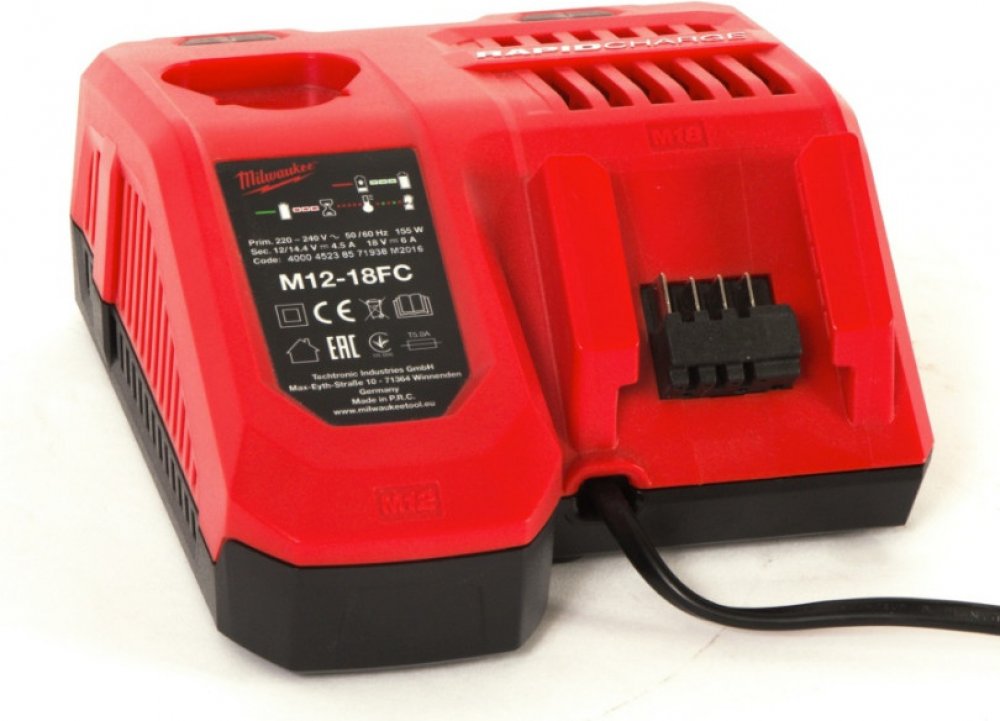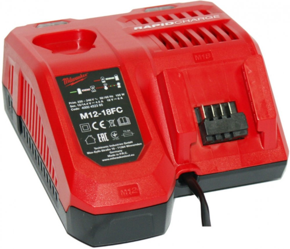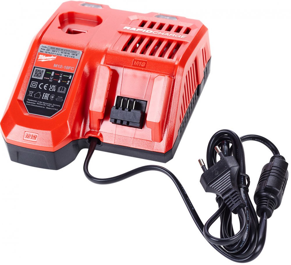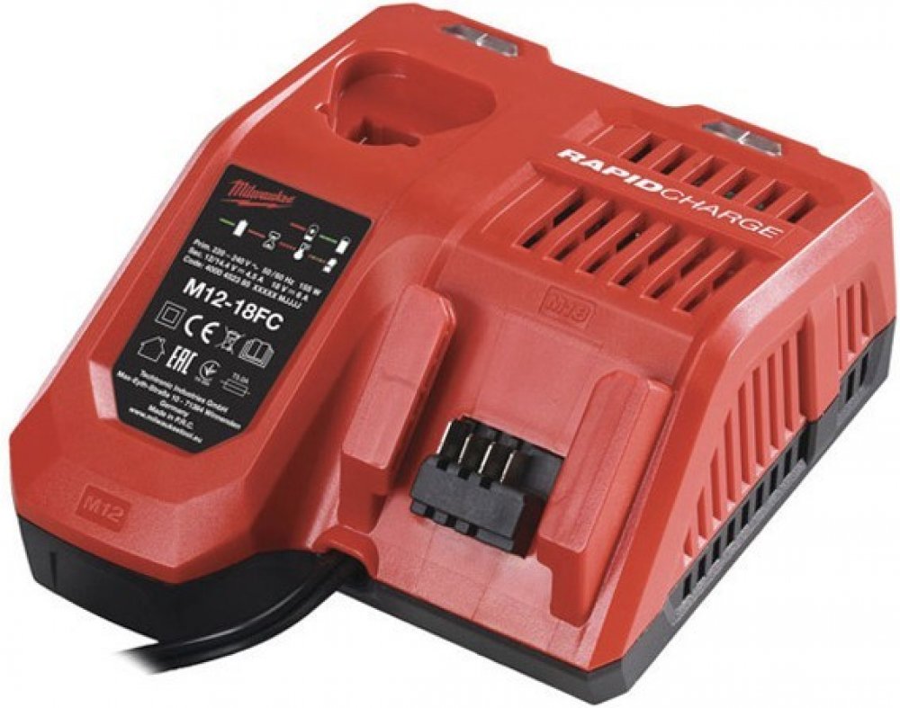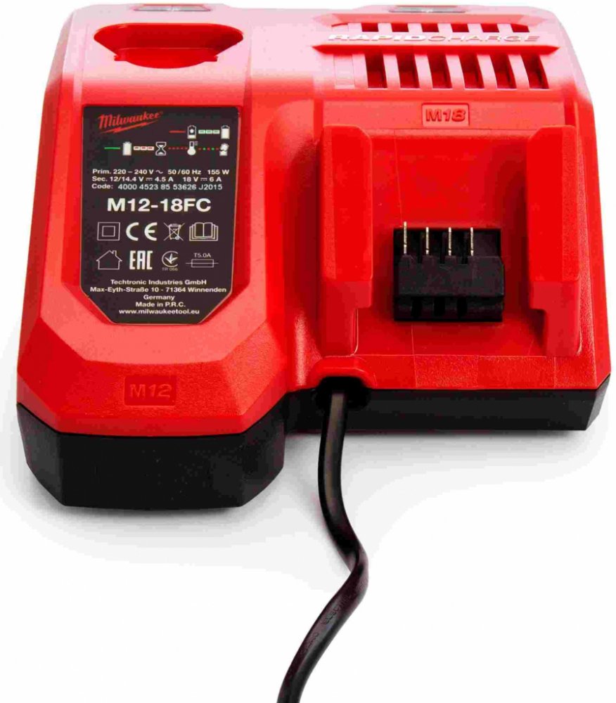 Inteligentní rychlonabíječka M12-18 FC RAPID CHARGE je určena výhradně pro nabíjení li-iontových baterií. Díky speciální elektronice sama rozpozná, jakou baterii jste vložili a podle toho upraví nabíjecí režim. Je o cca třetinu rychlejší, než běžná nabíječka. Je součástí všech strojů Milwaukee FUEL.
