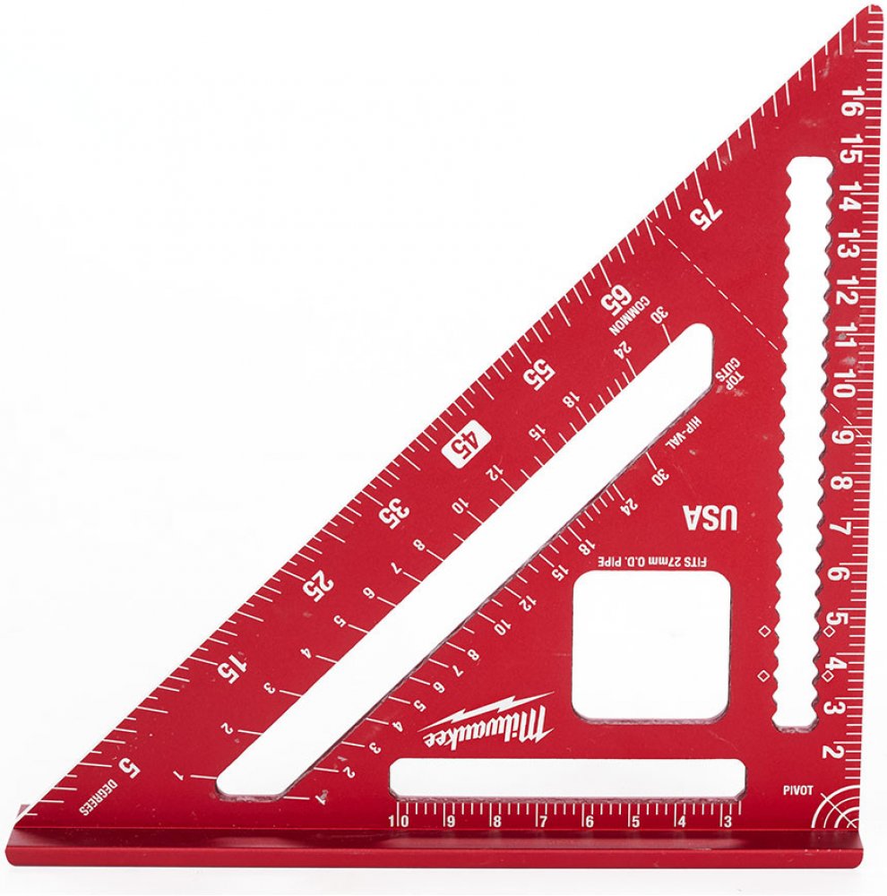 Spodní stupnice se využívá pro měření sklonu krokví, druhou stupnici použijete vhodně na sklon nárožních a úžlabních krokví
