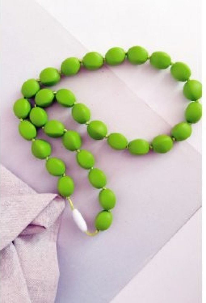 Korále jsou vyrobeny z měkkého potravinového silikonu, který neobsahuje žádné zdraví škodlivé látky jako BPA, ftaláty, olovo, kadmium nebo těžké kovy a je velmi příjem...