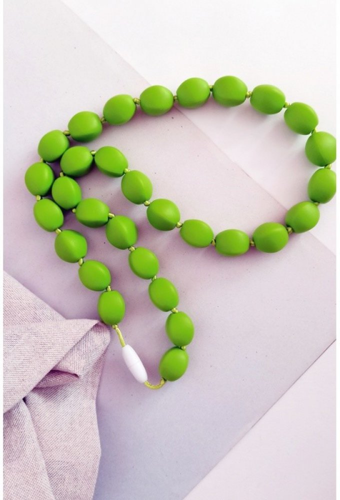 Korále jsou vyrobeny z měkkého potravinového silikonu, který neobsahuje žádné zdraví škodlivé látky jako BPA, ftaláty, olovo, kadmium nebo těžké kovy a je velmi příjemný na dotek.