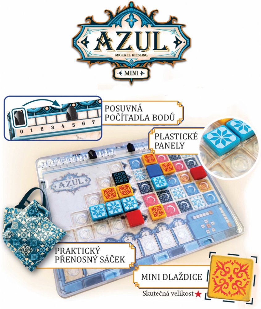 Po úspěšném tažení světem a prodeji více než 2 milionů kusů se Azul vrací ve formátu mini. Tuto novou edici si díky ideální velikosti a praktickým doplňkům budete moci zahrát kdekoli chcete!
