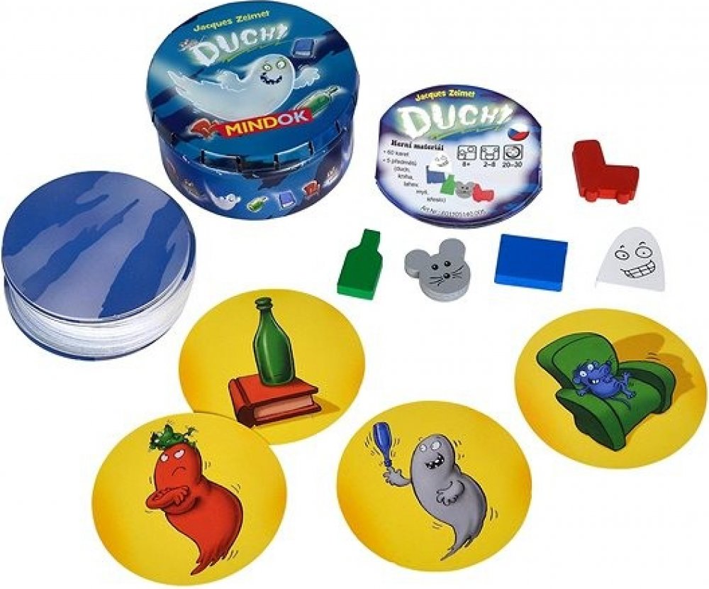 Duch Mini je skvělou variantou pro hráče, kteří milují rychlé postřehové hry, ale chtějí si ji užít i na cestách. Tato zmenšená verze obsahuje 3 dřevěné předměty místo 5, což hru zjednodušuje, ale stále zachovává napínavý charakter originálu. Stejně jako v klasické verzi Duch hráči otáčejí karty a musí co nejrychleji sebrat buď předmět, který je správně zobrazen na kartě, nebo ten, který není na kartě zobrazen vůbec.