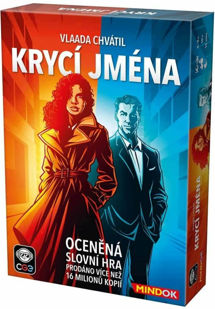 Slovní asociační hra pro dva týmy tajných agentů. Vaším úkolem bude odhalit jména všech agentů vašeho týmu dříve, než tak učiní soupeř. Pozor si však musíte dávat na nájemného vraha, který hru okamžitě ukončí!.