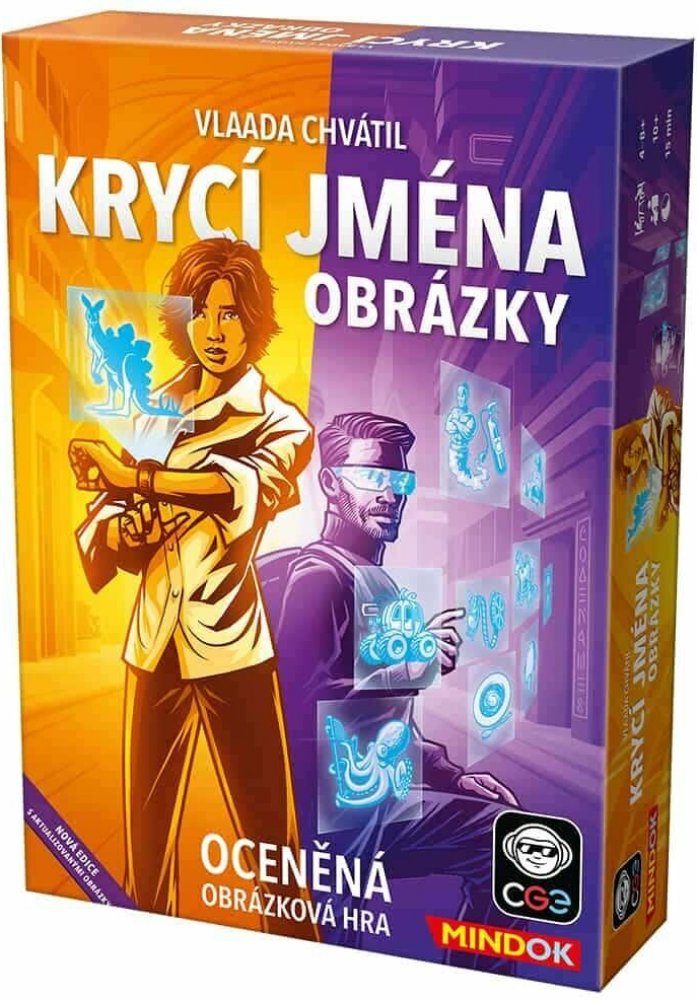 Jen hlavní špióni vědí, jaký agent se nachází ve které lokaci. Jejich operativní týmy se tajná místa setkání dozvědí pouze prostřednictvím zakódovaných zpráv. Operativci proto musejí být chytří – chyba v dekódování může vést k nepříjemnému setkání s nepřátelským agentem. Nebo dokonce s nájemným vrahem! Oba týmy se snaží jako první kontaktovat všechny své agenty, ale zvítězit může pouze jeden! Od původních Krycích jmen se verze Obrázky liší tím, že agenti se zde neskrávají pod jednotlivými slovy, ale pod obrázky, které v sobě pojímají více aspektů.