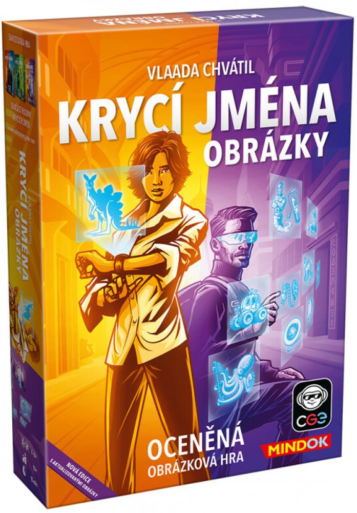Krycí jména: Obrázky je nová, samostatně hratelná verze výborné a oceňované párty hry Vládi Chvátila, která u nás vyšla pod názvem Krycí jména. Nová verze se hraje velmi podobně, jen na kartičkách na stole nenajdete slova, ale obrázky. V této verzi je tak většinou snadnější napovídat a propojovat jednotlivé karty asociacemi. Vůbec nepochybujeme o tom, že i tato verze si získá srdce mnohých hráček ...
