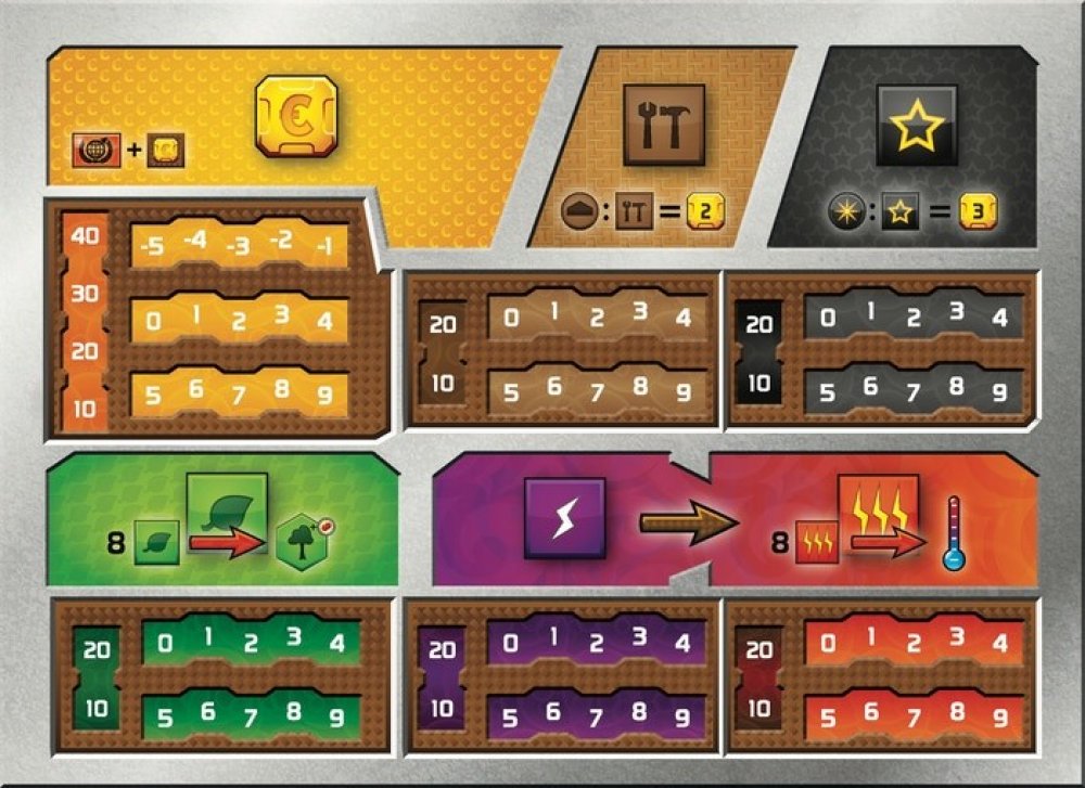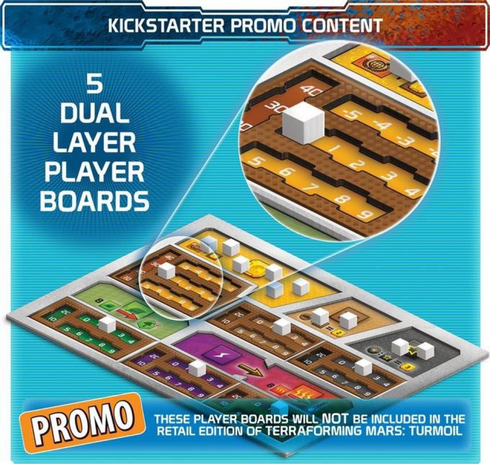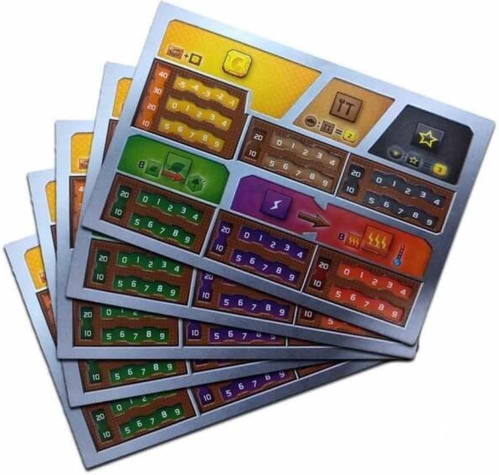 Vylepšené desky ocení každý hráč, který si jednou zahrál Mars: Teraformaci. Žádné kostičky už se vám nebudou přesouvat mezi kolonkami! Vše má pěkně svůj „chlívek“ a když drknete do stolu, vše zůstane na svém místě. Desky jsou z několikavrstvého kartonu a v balení jich je pět. Věk: 12+ Herní doba: 90 - 120 minut Počet hráčů: 1 - 5 hráčů. Hra je v českém jazyce.