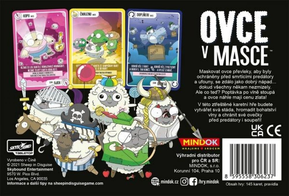 Ovce v masce je svižná karetní hra, ve které se snažíte sbírat sady ovcí, abyste vytvořili stáda. Používejte akční karty k narušení plánů soupeřů a chraňte svá stáda před odhalením. Vítězem se stává ten, kdo jako první shromáždí potřebný počet stád a zároveň nemá žádné stádo odmaskované!