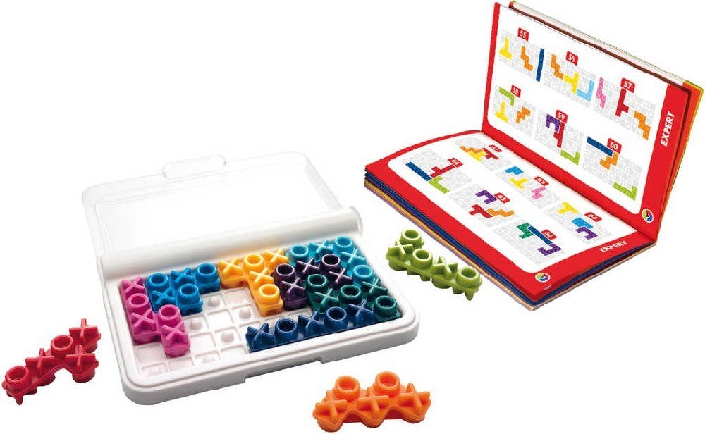 Tato hra přináší objetí a polibky vašemu mozku. Umístěte na herní plán 10 oboustranných herních dílků tak, aby se "X" a "O" ve všech směrech pravidelně střídala. 120 rébusů této kompaktní hry vám přináší dlouhodobou zajímavou výzvu.