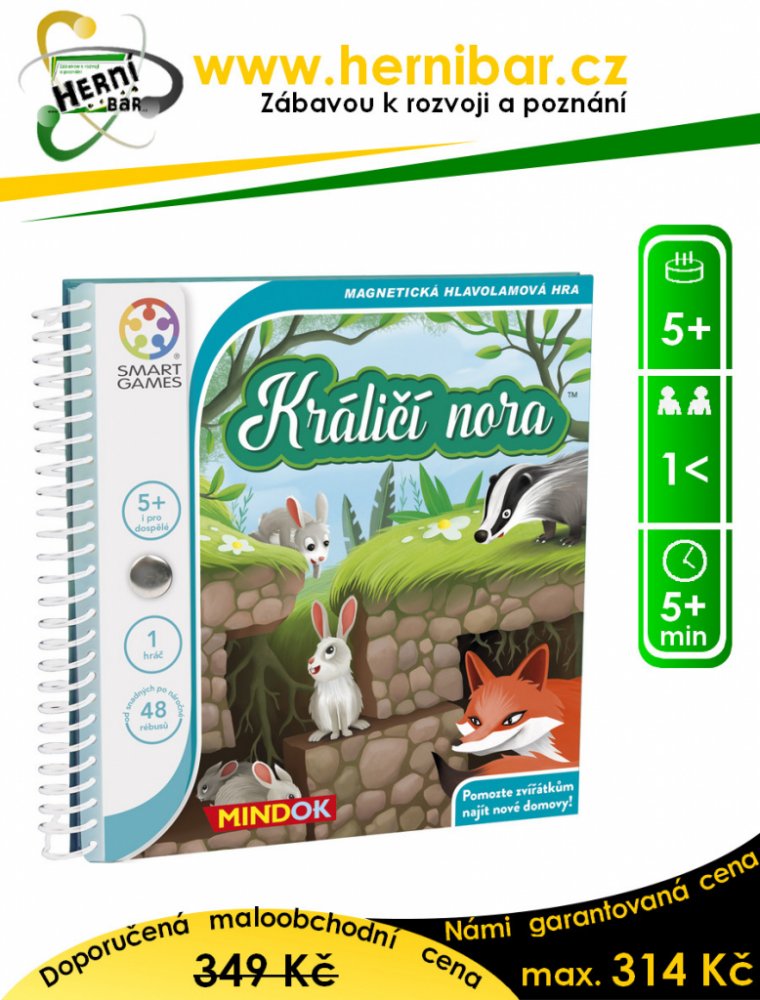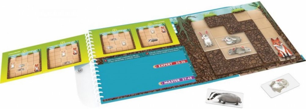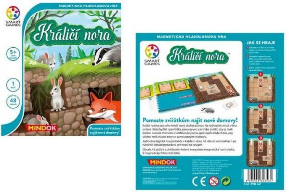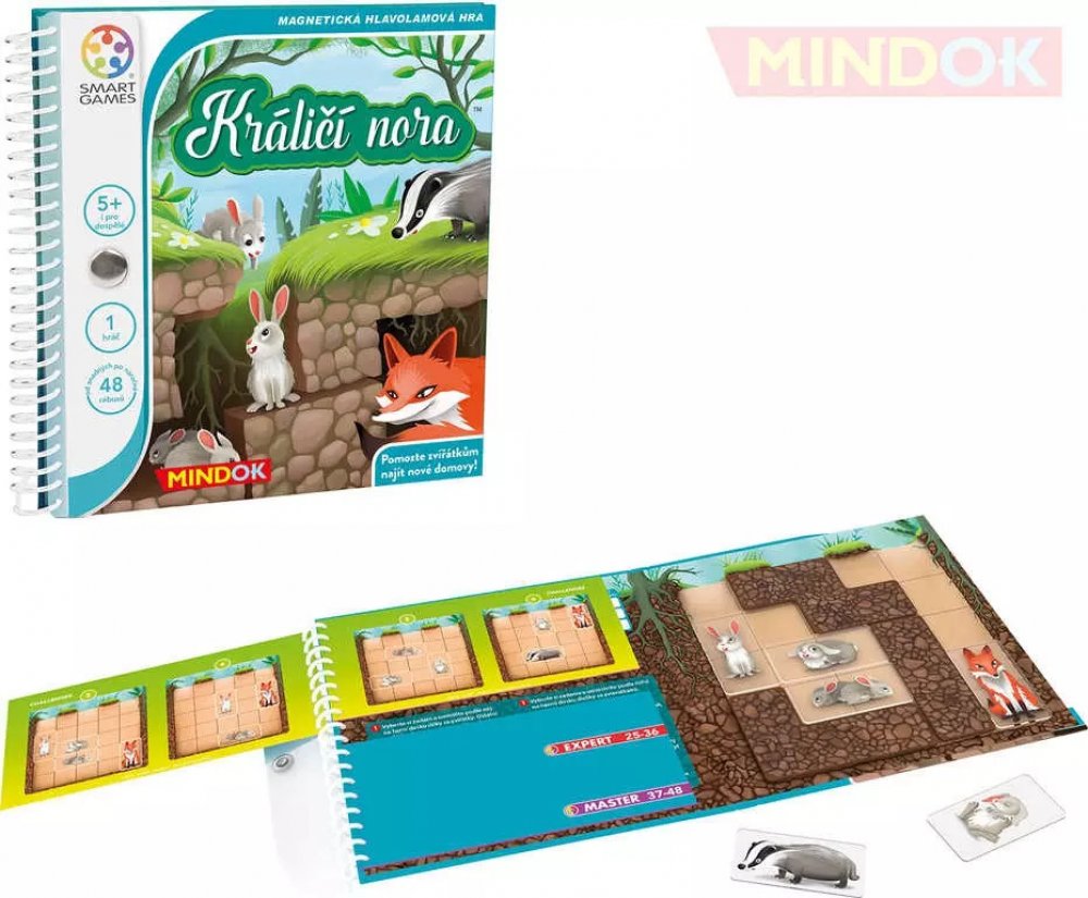 Pomozte zvířátkům najít nové domovy! Králičí rodina pro sebe hledá nový útulný domov. Na nejhezčím místě v lese ovšem chtějí bydlet i paní liška, pan jezevec a je třeba zařídit, aby je malí králíčci nerušili. Pomozte zvířátkům kopat na správných místech tak, aby všichni měli vlastní nory se samostatnými východy. Jedinečná logická hra pro hráče v každém věku. 48 rébusů od snadných po náročné. Ideál...