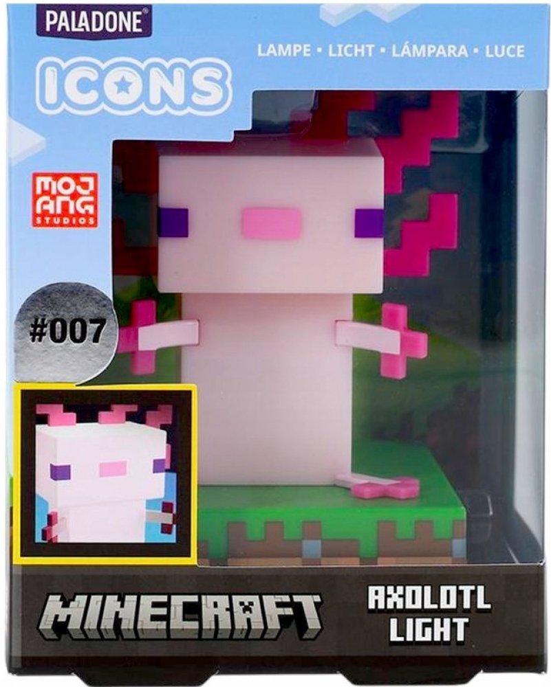 Figurka PALADONE přinese radost sběratelům Figurka ze série Minecraft vyniká kvalitním zpracováním Pozornost upoutají světelné efekty V balení najdete jednu figurku Figurka PALADONE měří 14 cm Sběratelská LED lampička výšky 10 cm, kterou je možné použít jako noční světlo. K provozu jsou nutné 2× AA baterie, které nejsou součástí balení. Na baterie: 3x AAA (nejsou součástí balení) Svítící figurka Axolot potěší všechny milovníky kultovní počítačové hry Minecraft, která se stala celosvětovým herním fenoménem. Oblíbená postava umožňuje propojení s herním světem a reálným životem. Vhodná jako doplněk na stůl nebo jako noční světlo do dětského pokoje.