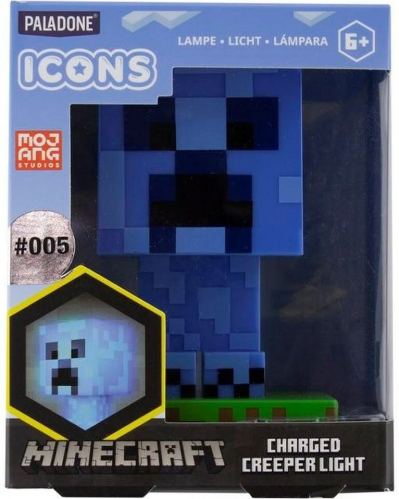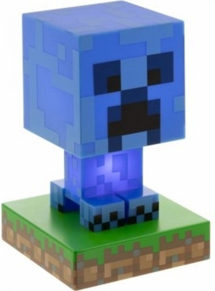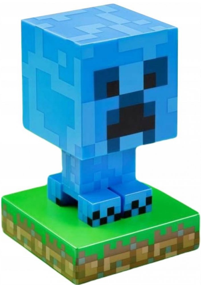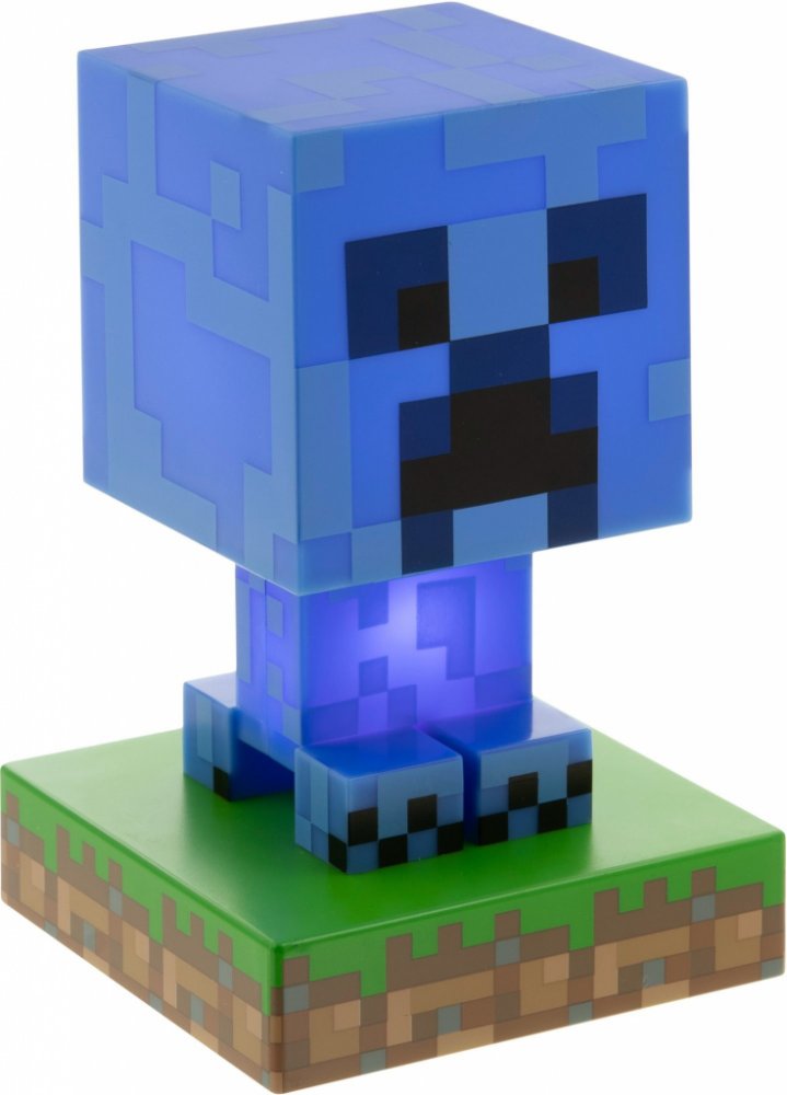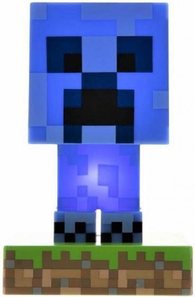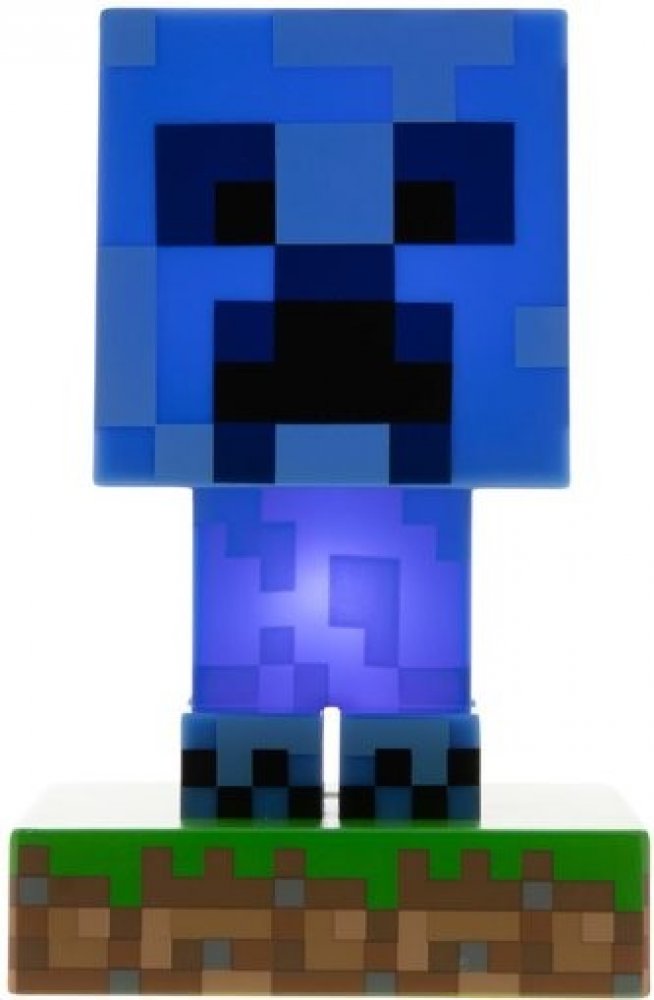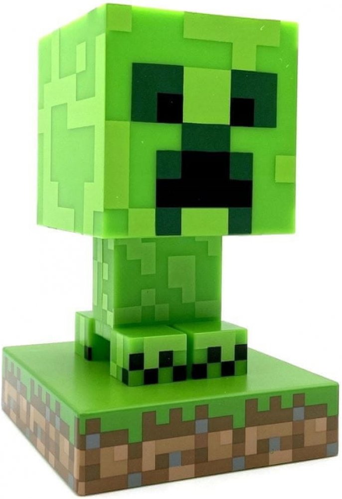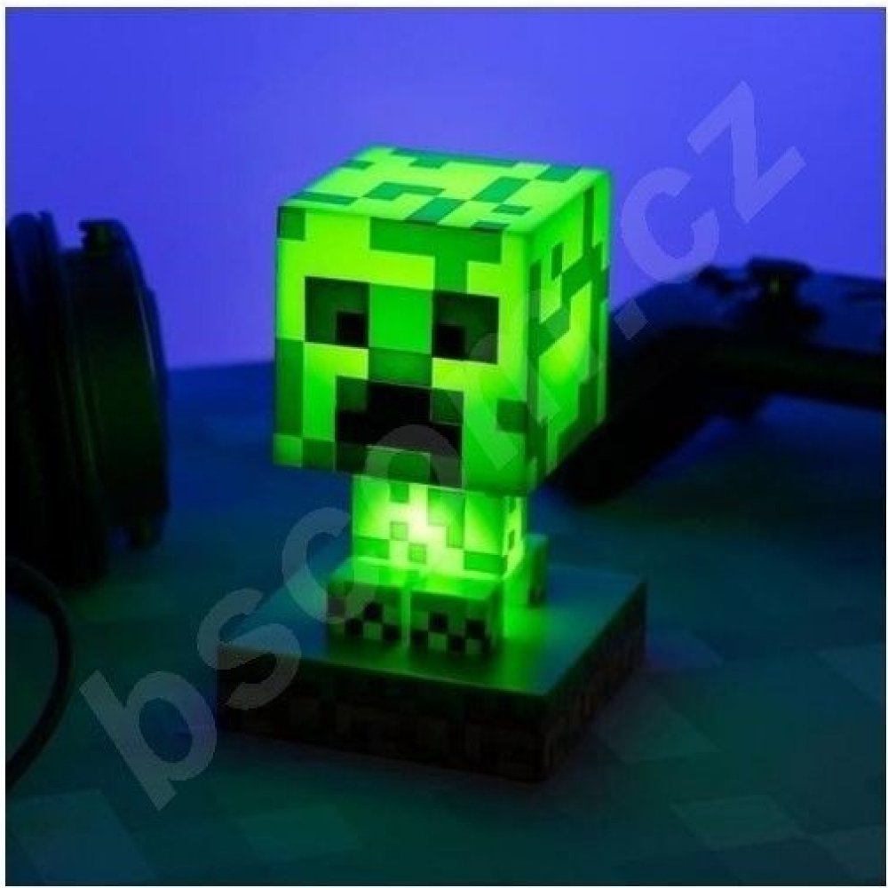 Stolní dekorativní lampa s grafikou 3D creeper icon ze hry Minecraft. Napájeno pomocí dvou AAA baterií, není součástí balení.