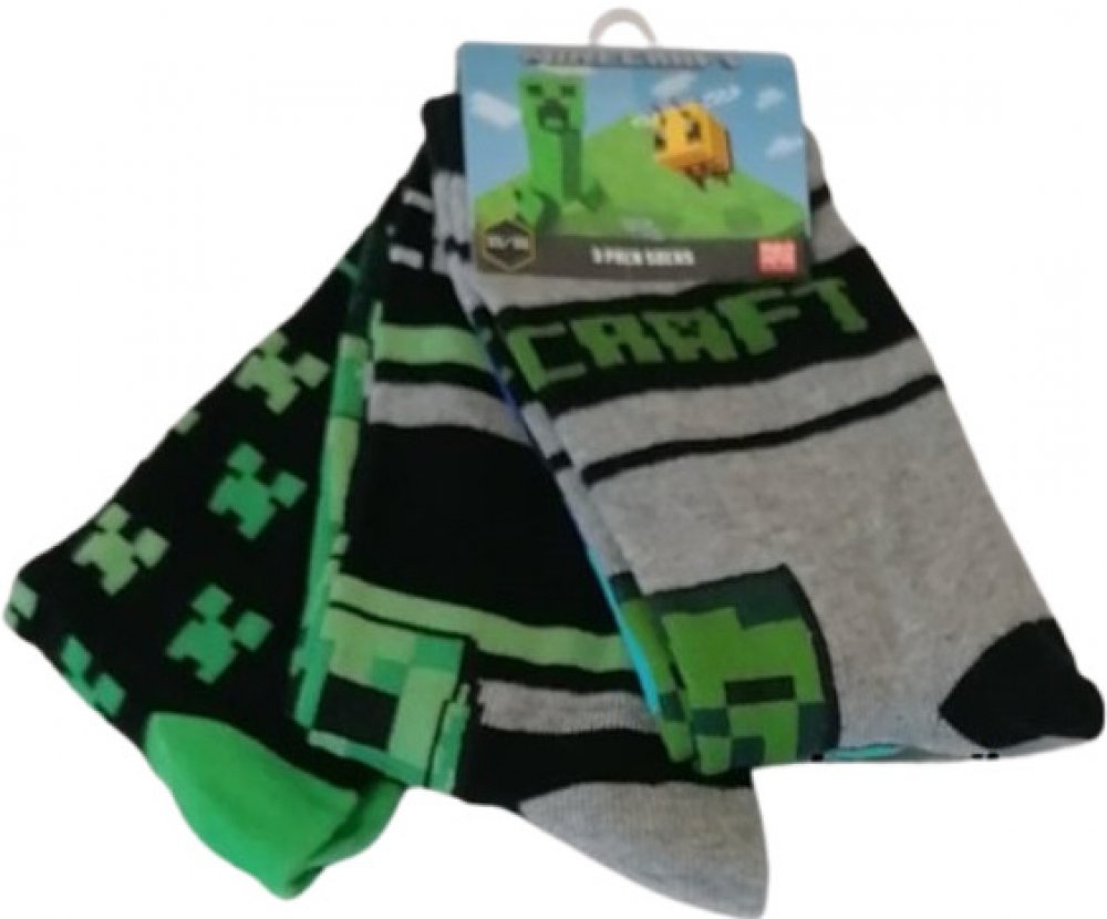 kvalitní ponožky s oblíbeným motivem Minecraft materiál : 70% bavlna, elastan, polyester velikost : 27/30, 31/34, 35/38 barva : mix balení obsahuje 3 páry ponožek