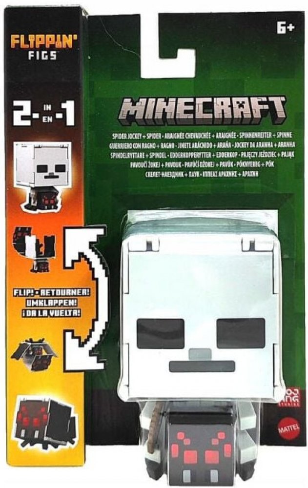 Hledáte Minecraft Flippin Spider Jockey ? U nás za skvělou cenu 398,00 Kč! Neváhejte a nakupte u profesionálů. Voláme všechny fidgetery! Připravte se na nepřetržitou akci se sběratelskými figurkami Minecraft Flippin' Figs! Tyto Flippin' Figs o měřítku 9,3 cm se snadno otáčejí a transformují z jedné figurky na druhou. Stačí odklopit panely na nadměrně velké hlavě každé figurky a zaaretovat je na mí...