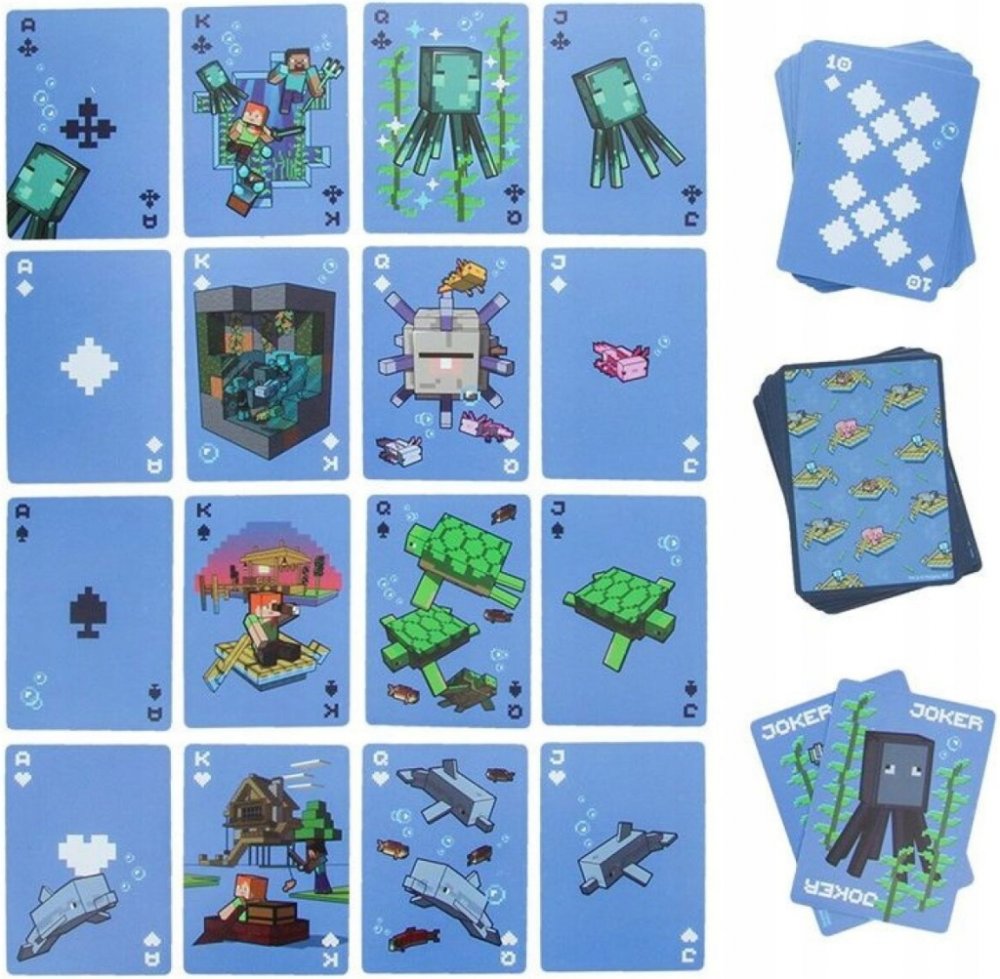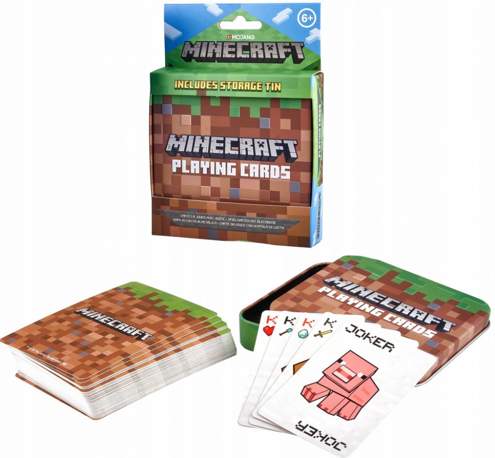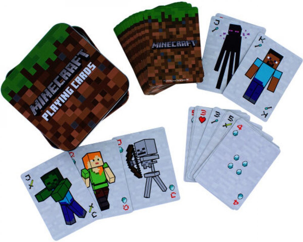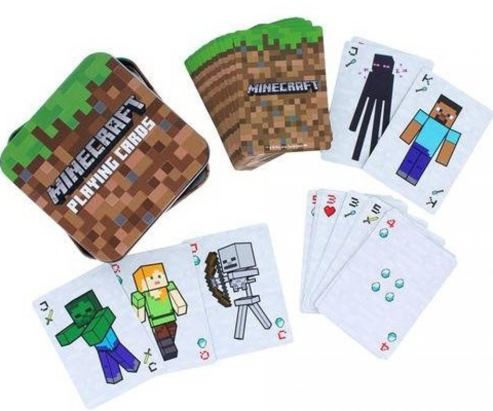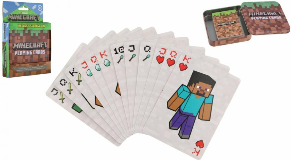 Publikace: Hrací karty Minecraft - neuveden. Karty Minecraft potěší všechny příznivce stejnojmenných videoher. S jejich pomocí si budete moci zahrát karty, které jsou doplněné o oblíbené postavy kostičkové videohry. Balíček obsahuje 54 žolíkových karet, které jsou uložené v praktické plechové krabičce. Díky ní si je můžete vzít na výlet či dovolenou a nepoztrácí se vám. Karty Minecraft představují...