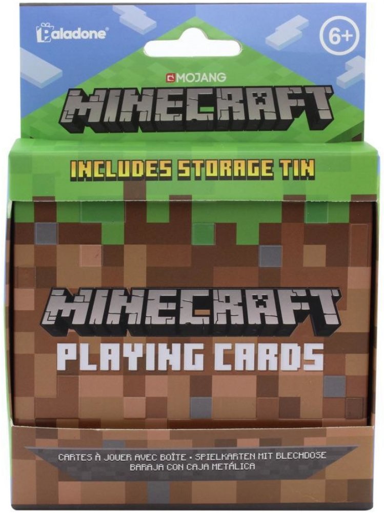Publikace: Hrací karty Minecraft - neuveden. Karty Minecraft potěší všechny příznivce stejnojmenných videoher. S jejich pomocí si budete moci zahrát karty, které jsou doplněné o oblíbené postavy kostičkové videohry. Balíček obsahuje 54 žolíkových karet, které jsou uložené v praktické plechové krabičce. Díky ní si je můžete vzít na výlet či dovolenou a nepoztrácí se vám. Karty Minecraft představují skvělou zábavu pro malé i velké. Oficiálně licencovaný produkt. Publikace: Hrací karty Minecraft - neuveden.