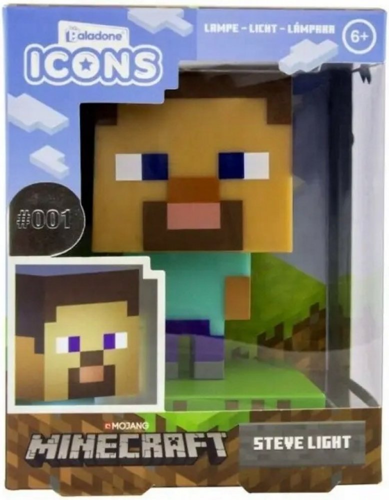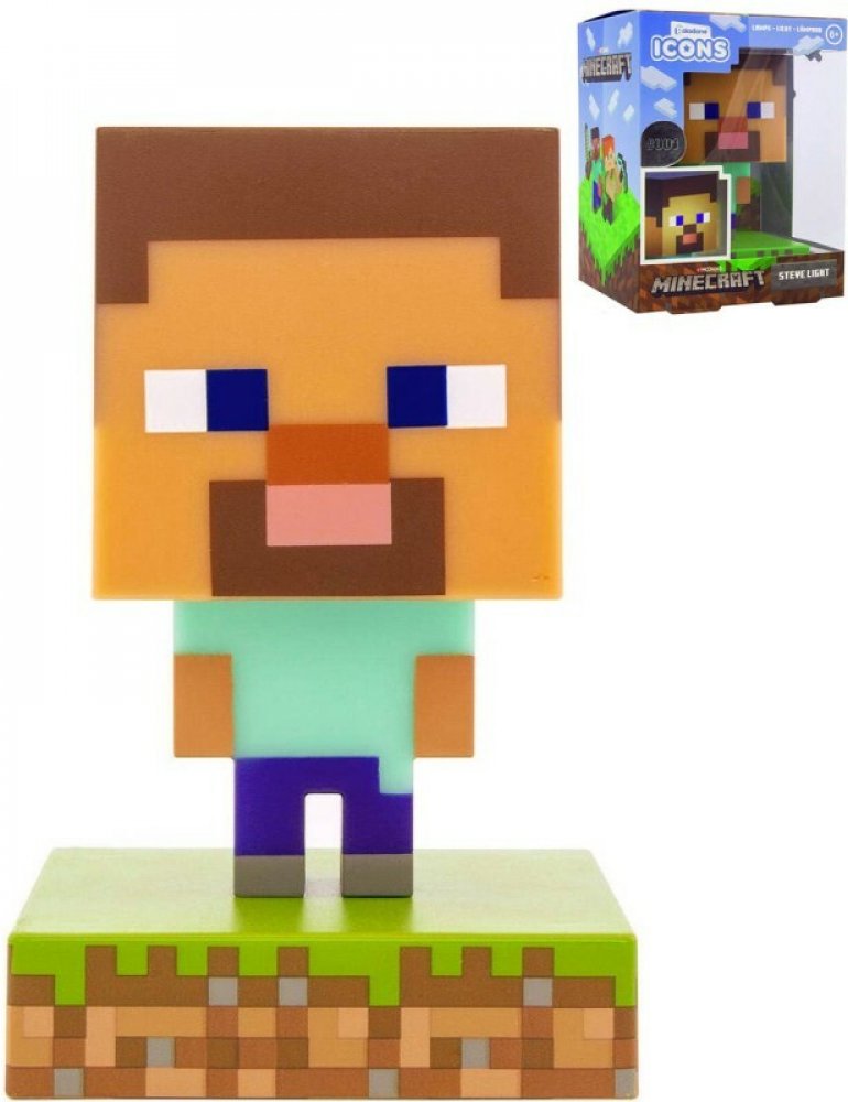 Oficiální svítící figurka a doplňkové zboží z katalogu produktů s logem a grafikou počítačové hry Minecraft.