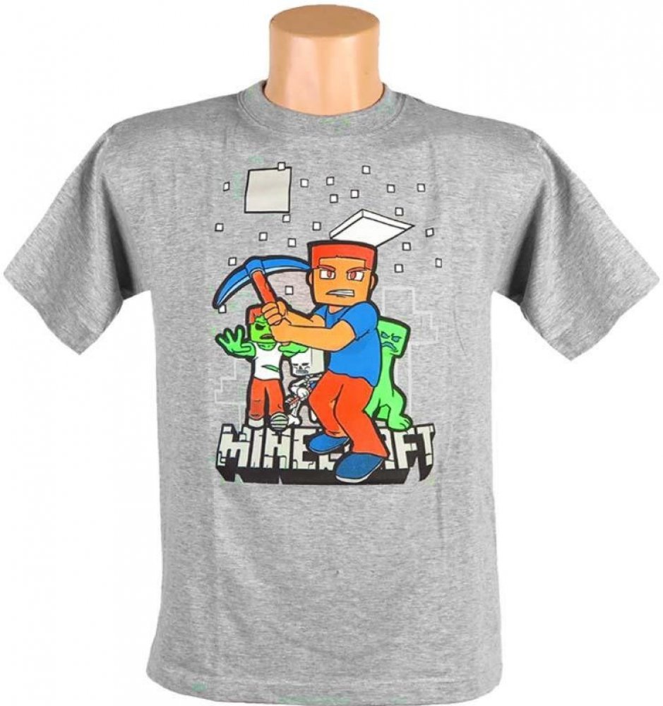 velikostní čísla: 116, 122, 128, 134, 140, 146, 152, 158, 164materiál: Úplet 100% Bavlna, 145 g / m2barva a design: šedá s logem minecraft
