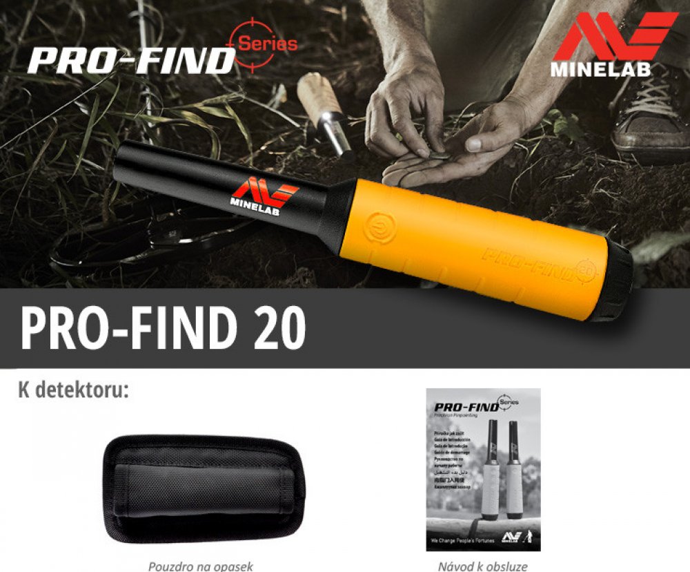 PRO-FIND 20 Vám pomůže přesně lokalizovat cíle a to i uvnitř velice úzkých děr. Výsledkem je, že můžete kopat užší díry a méně narušovat terén. PRO-FIND 20 je dohledávačka z nové řady přístrojů Minelab, má odolnou a hezky viditelnou konstrukci. Detektor je voděodolný, což znamená že ho můžete kdykoli opláchnout pod tekoucí vodou.