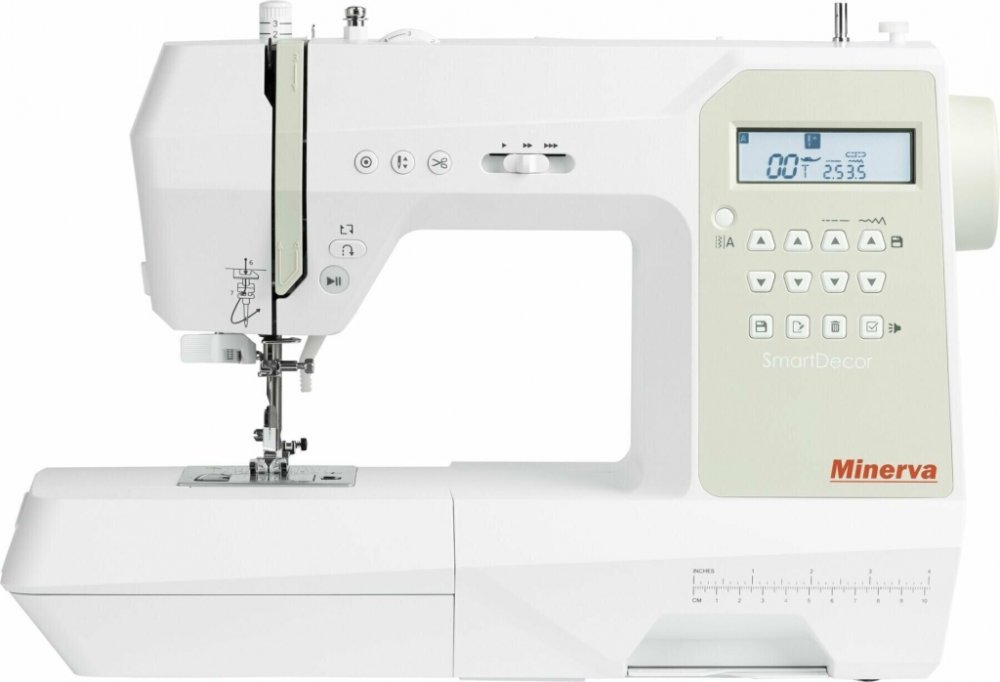 Šicí stroj. Minerva SmartDecor je moderní počítačový šicí stroj, který nabízí až 199 šicích programů včetně dekorativních vzorů, elastických stehů, owerlokových úprav a automatického vyšívání písmen a číslic. Díky funkci zrcadlového obrazu stehů, paměti vzorů a automatickému obšívání knoflíkové dírky je ideální pro kreativní projekty i precizní každodenní šití. Je vhodný pro pokročilé uživatele, k...