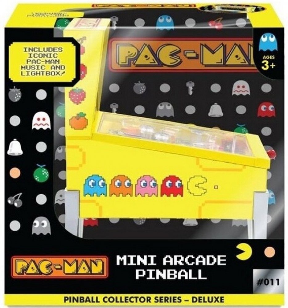 Stolní pinball je vybaven elektronickým LED displejem pro zobrazení skóre, barevnými světelnými efekty, bonusovými tunely a zvukovou kulisou. Skóre se ukládá automaticky a hráči se střídají ve snaze dosáhnout co nejvyššího výsledku. Motiv Pac-Mana zaujme děti od 6 let. Hra obsahuje: kompaktní pinballovou plochu s bumpery, elektronické skóre s velkým LED displejem a automatickým detekováním ztracené koule, výrazné barevné LED osvětlení a zvukové efekty, koule pro pinball, návod.