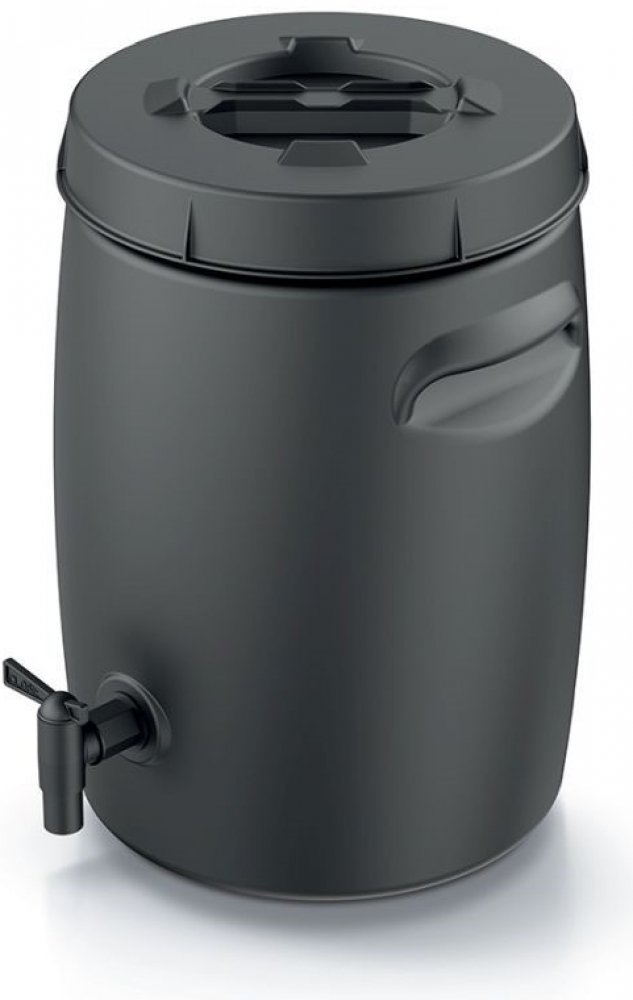 Kompostovací nádoba o objemu 25 l. Určeno na výrobu organického hnojiva z běžných zahradních a lučních rostlin, domácího bio odpadu. Ideální pro zalévání rostlin. Víko kompostéru chrání obsah nádoby před hmyzem a zároveň umožňuje volnou výměnu vzduchu, díky čemuž se eliminují nepříjemné pachy. Výroba trvá cca 2 - 4 týdny. Praktický kohoutek pro výlev. Rozměry (š x v x h): 296 x 425 x 296 mm.