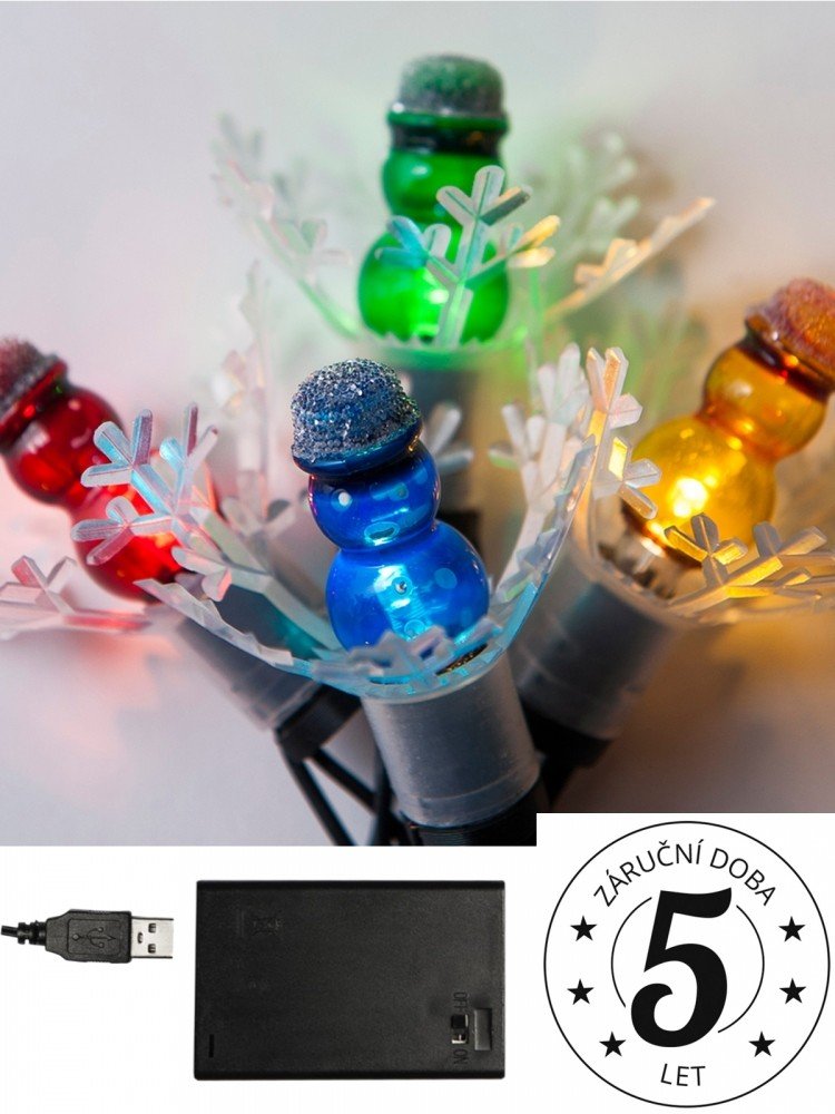 Mini vánoční řetěz ASTRA LED 5,7m 20ks retro sněhuláků USB baterie