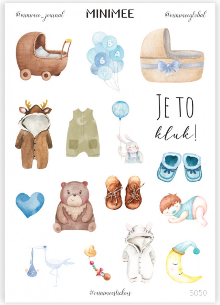 MINIMEE Papírové samolepky v aršíku A5 Je to kluk!