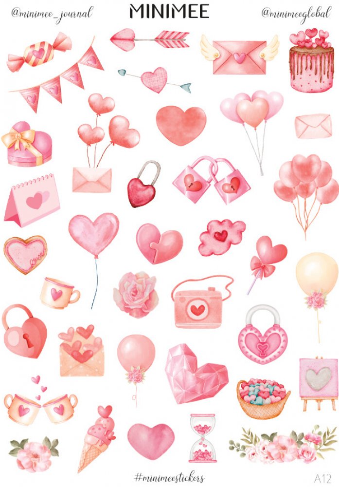 Krásné vyřezávané samolepky v aršíku A5, které zaujmou nejen svým designem. Kvalitní bílá samolepka matného, přírodního vzhledu.Aršík obsahuje sadu zamilovaných samolepek s motivy srdíček, balónků a zámků. Samolepky z Valentýnké kolekce pro všechny zamilované.