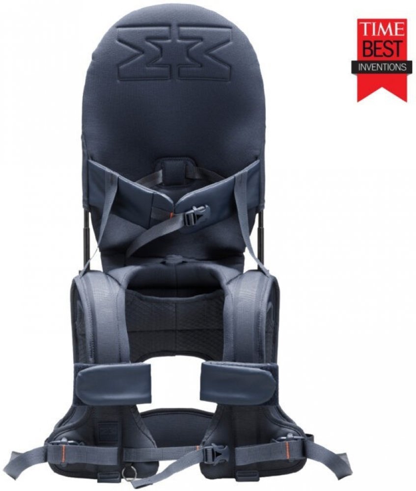 Je to taška na plenky, kterou táta používá v kanceláři, a jediný batoh na světě, který se na cestách promění v dětskou sedačku.