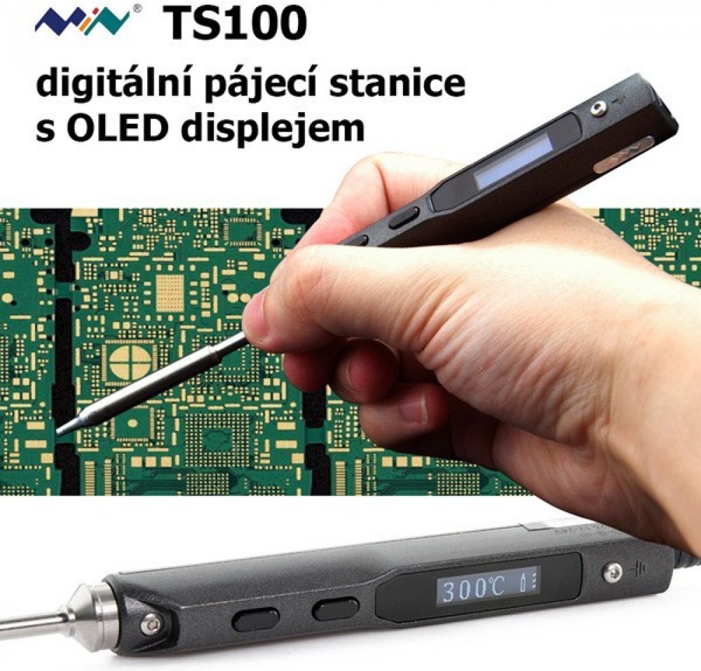 Páječku TS100 můžete napájet téměř čímkoliv. Od zapalovače v autě, přes trafo k notebooku až po baterii z modelu pro rychlou opravu v torénu. Samozřejmou součástí balení je zdroj 24V/3A do zásuvky 230V.