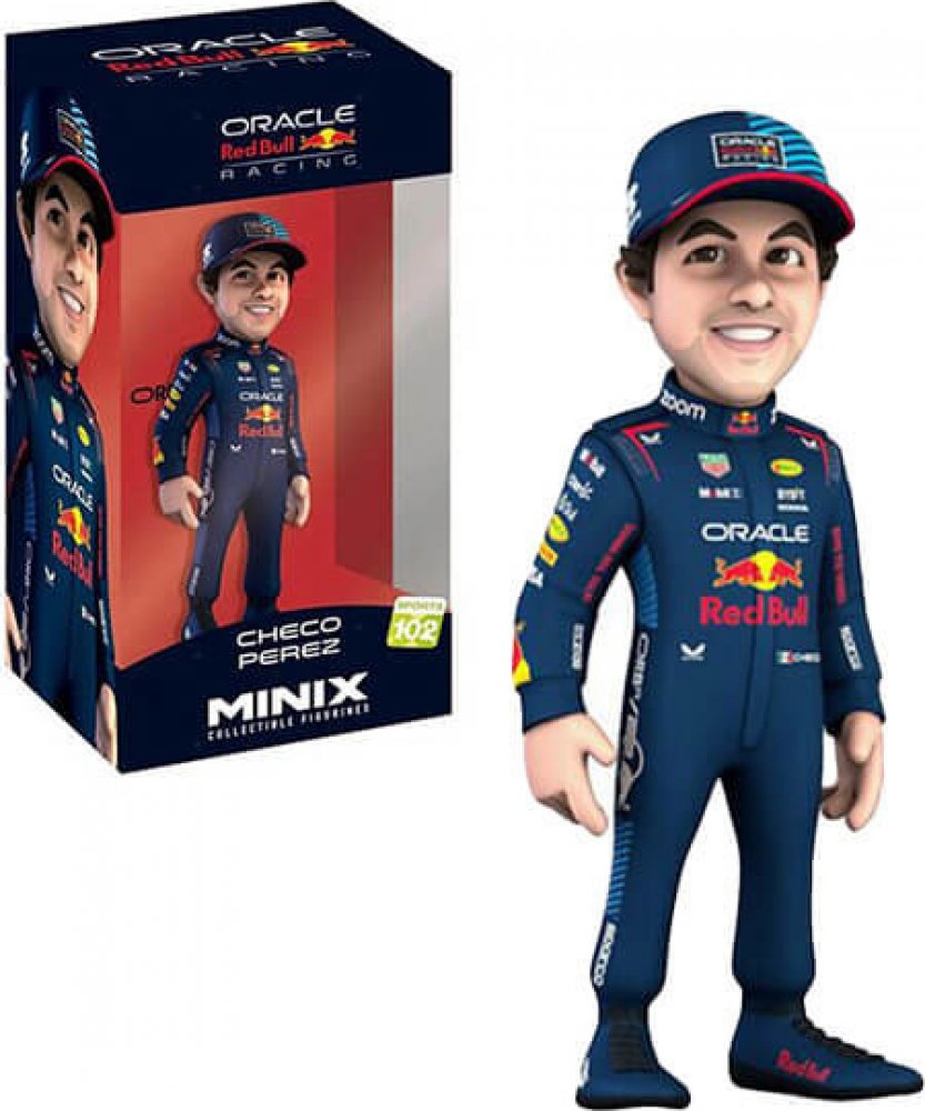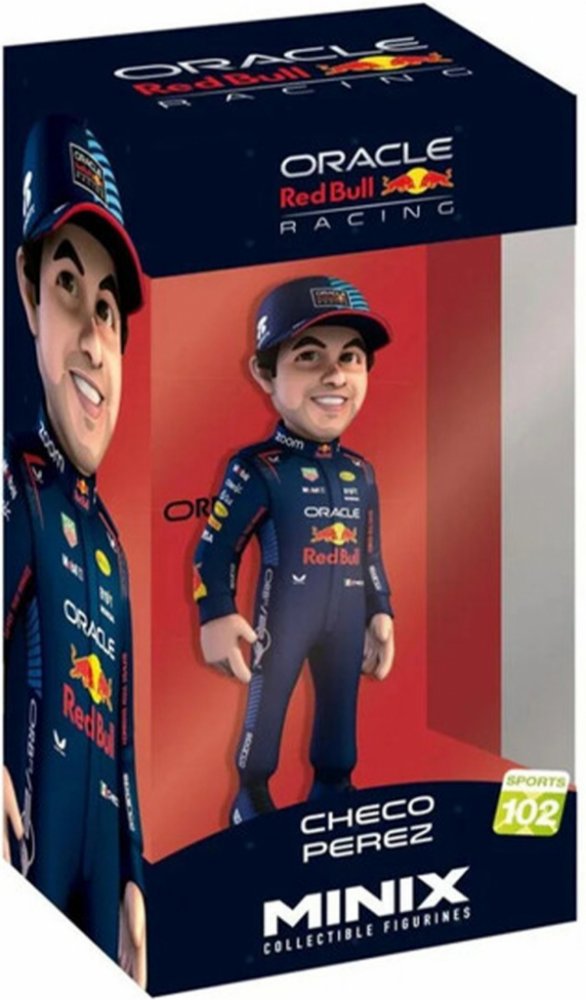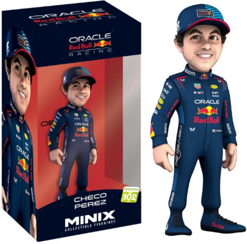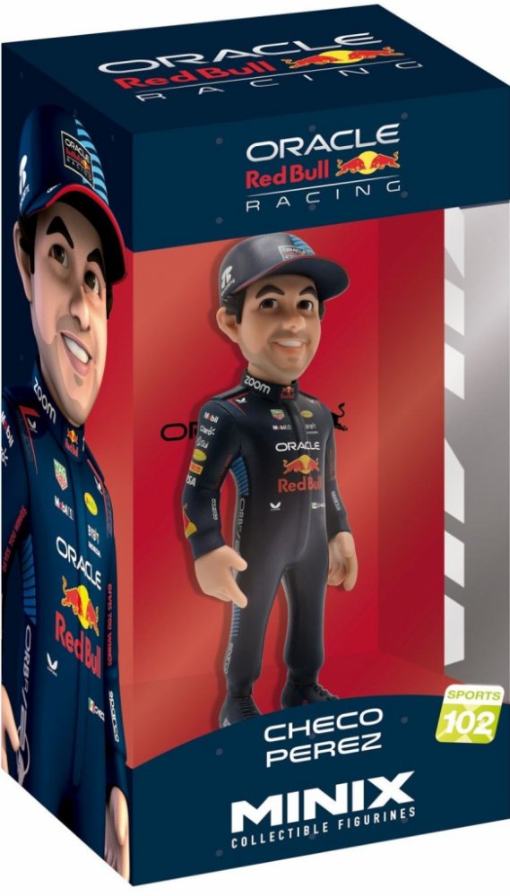 Minix Sports automobilový závodník, závodní jezdec Checo Perez, charakteristická plastová sběratelská figurka č. 102 pro všechny fanoušky Formule 1. Baleno v krabičce s průhledem.