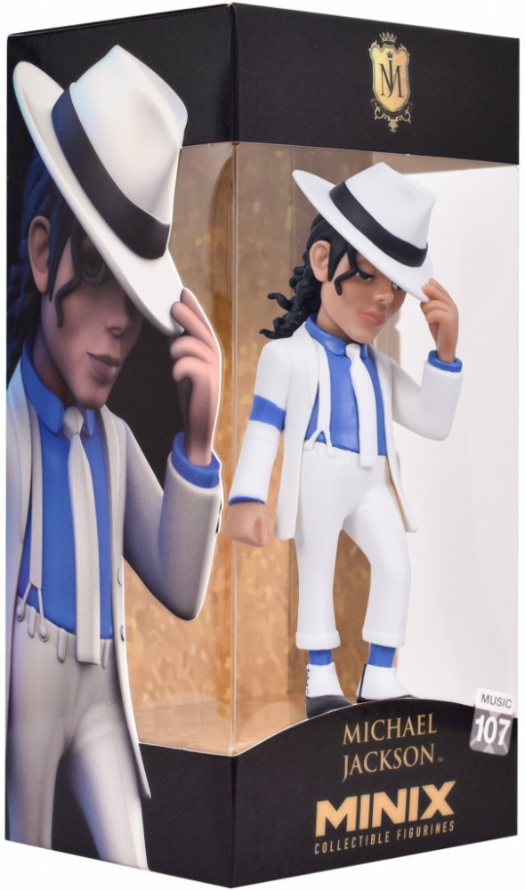 Minix Music hudební legendy, zpěvák Michael Jackson: Smooth Criminal, charakteristická plastová sběratelská figurka č. 107 pro všechny hudební fanoušky. Baleno v krabičce s průhledem.