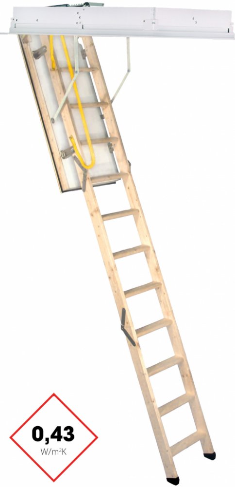 Bílý ocelový rám a bílé spodní víko nenápadně zapadají do místnosti a poskytují krásné zakončení stropu. Kombinace různých stavebních materiálů dělá z Euro Star stabilní půdní schodiště. Masivní žebřík o tloušťce 27 mm vydrží zatížení až 150 kg. Aby se zabránilo opotřebení schodišťových nohou a podlahy, jsou součástí dodávky plastové patky z vysoce kvalitního PVC.
