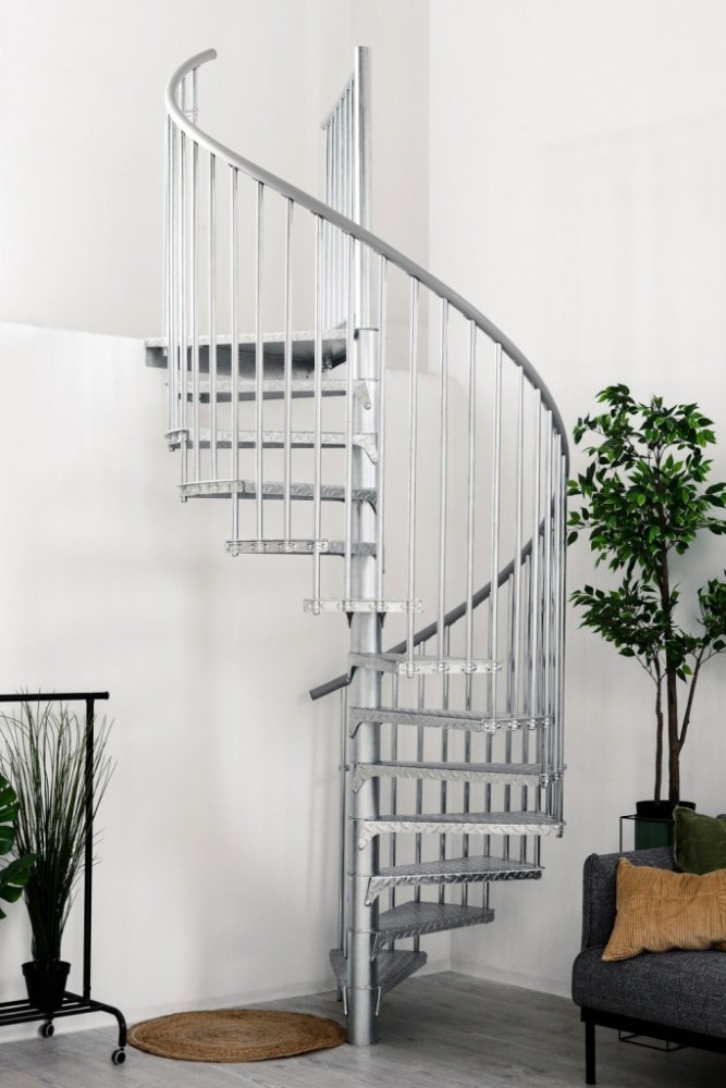 Venkovní točité schody Minka Rondo Zink Smart - pozinkované schodiště určené primárně pro venkovní užití. Rondo Zink Smart je schodiště stavebnicového typu, vhodné pro vyšší zatížení a častější použití. Celou sestavu lze jednoduše a poměrně rychle poskládat z jednotlivých stupňů - tedy modulů. Stupně jsou kovové v pozinkované úpravě a povrch každého stupně je perforován, pro bezpečné používání (sl...
